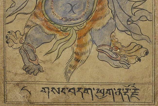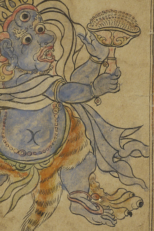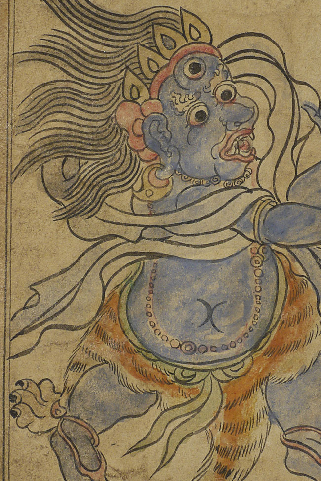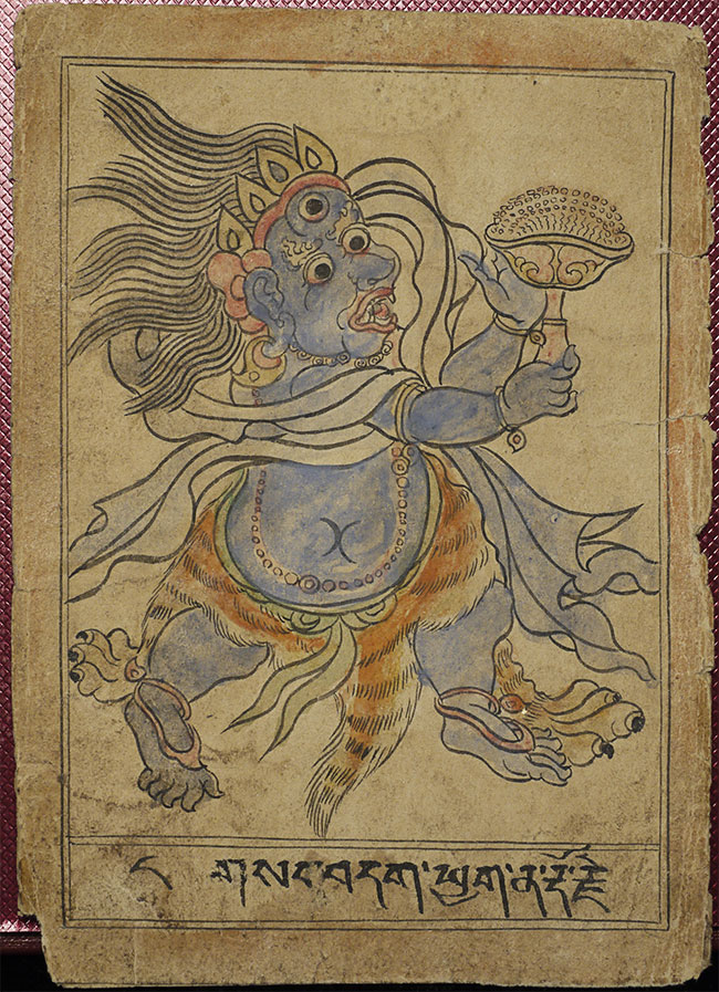 Small old Mongolian ritual painting. Measures 3 x 4 3/8 inches