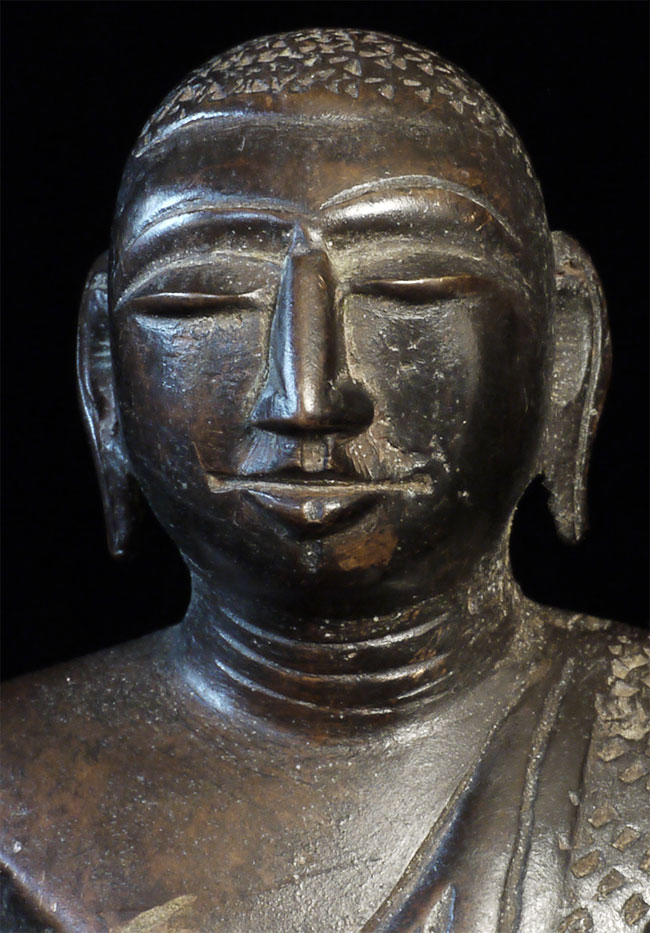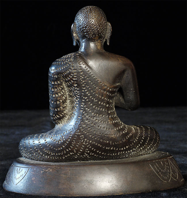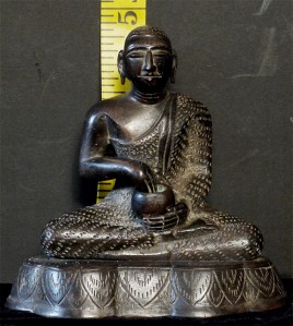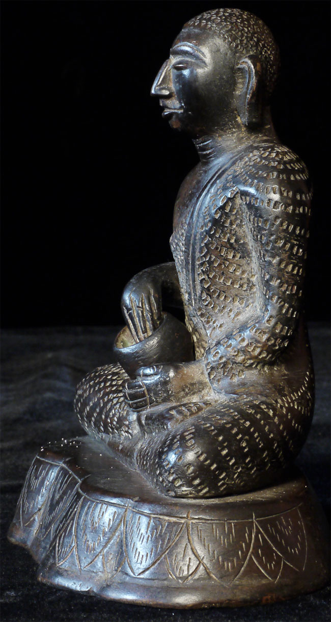 Early/mid 20thC Sri Lankan Buddhist Monk. Sits 4.75 inches tall, 4 5/8 inches wide. Over the years I've seen many Buddhas of this type, but very few monks. Exceptional expression-deep serenity.