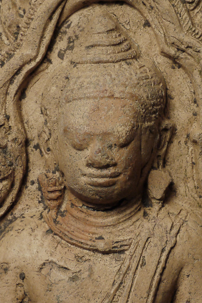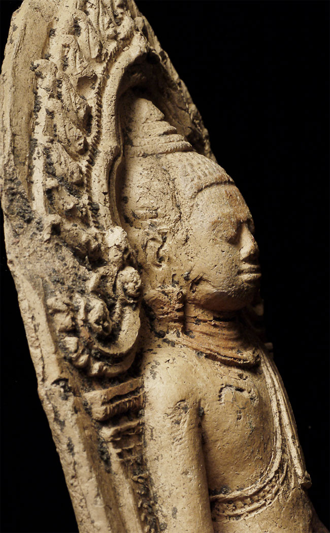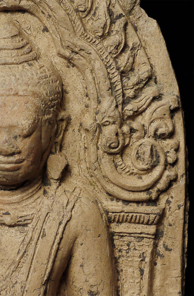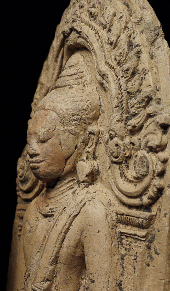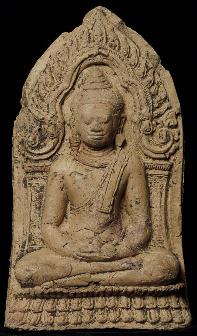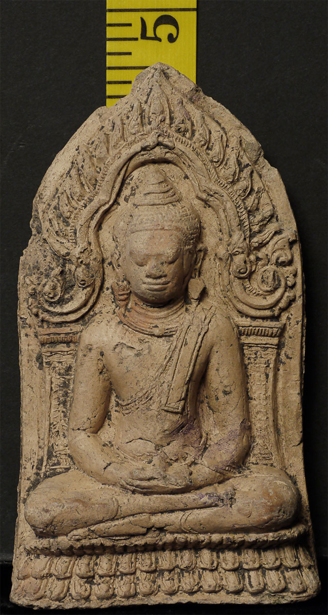 Cambodian Buddha Tablet. Probably a period (12/13thC) piece, though these have been emulated for centuries. A nice example. Some wear and loss. From a group of pieces I sold to a friend long ago that I recently re-purchased. Sits 4 5/8 inches tall.
