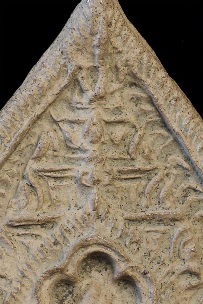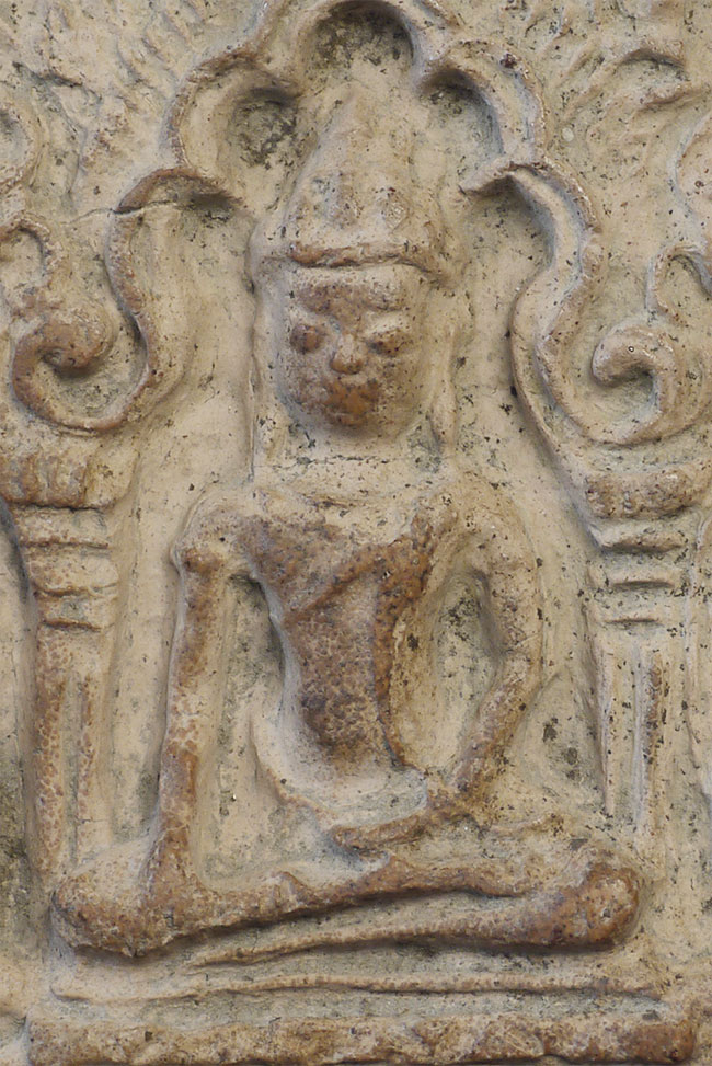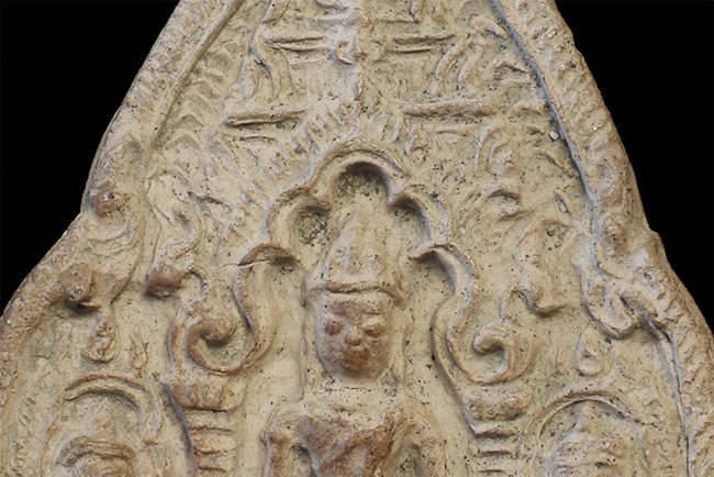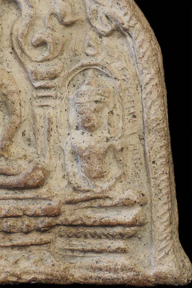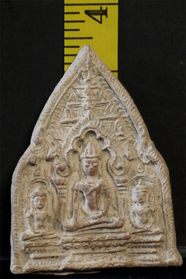 Cambodian Buddha Tablet. Possibly a period (12/13thC) piece, though these have been emulated for centuries. An nice example. Some wear and loss.3 3/8 inches tall, 2.5 inches wide. From a group of pieces I sold to a friend long ago that I recently re-purchased.