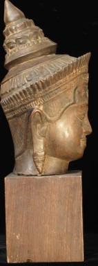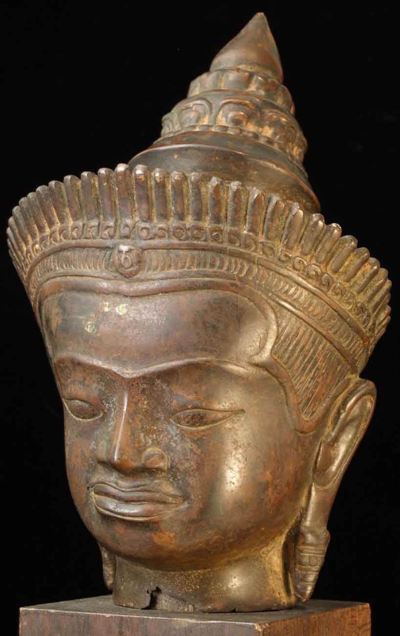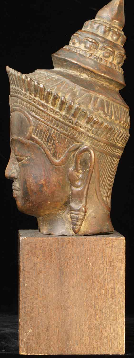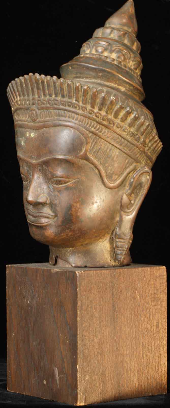 This was collected 35 years ago in Thailand by a person who was in in Air America (the CIA) in Southeast Asia. I recently bought bought a large part of his estate. This one is in a 13th century style- while not a period piece, I believe it has true age to it, and it is extremely well cast. A truly beautiful high quality one of a kind sculpture. This is not a tourist piece. It is Close to life size at 14 inches X 6 inches.