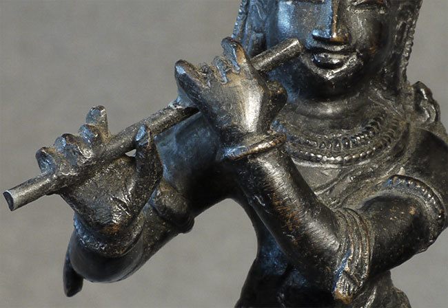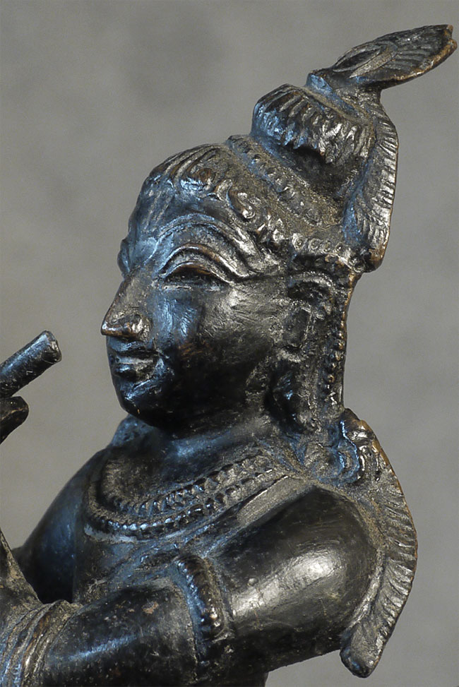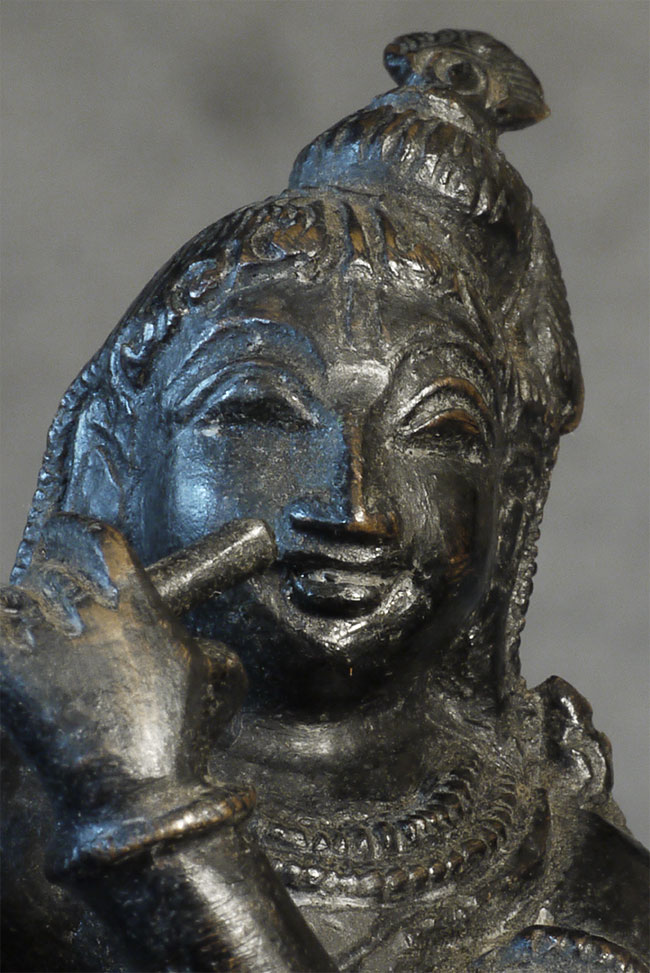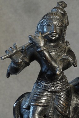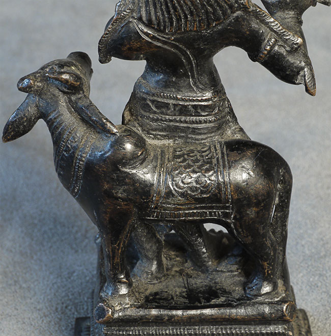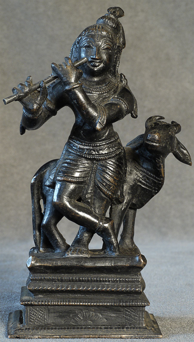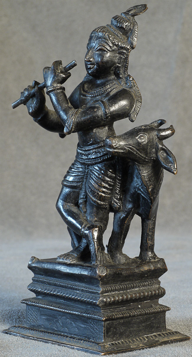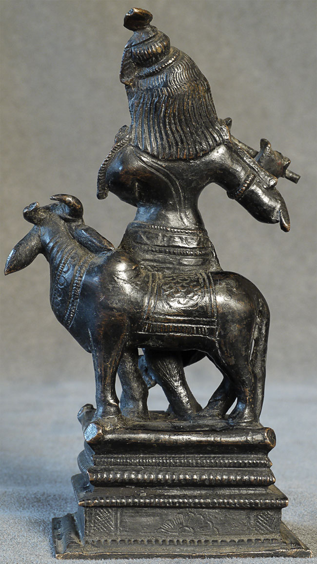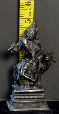 Vintage bronze Krishna with Nandi. 4 7/8 inches tall