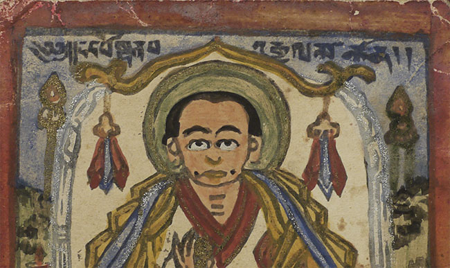 Small Mongolian Thangka. Measures 2.25 x 3 inches