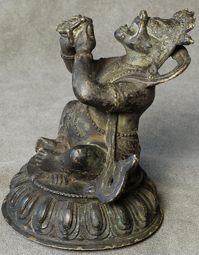 Antique Daka, eater of bad dreams. Sits 3/8 inches tall, bottom diameter of 3.25 inches. Looks to have good wear, but unsure how to date. Out of a collection in Spain.