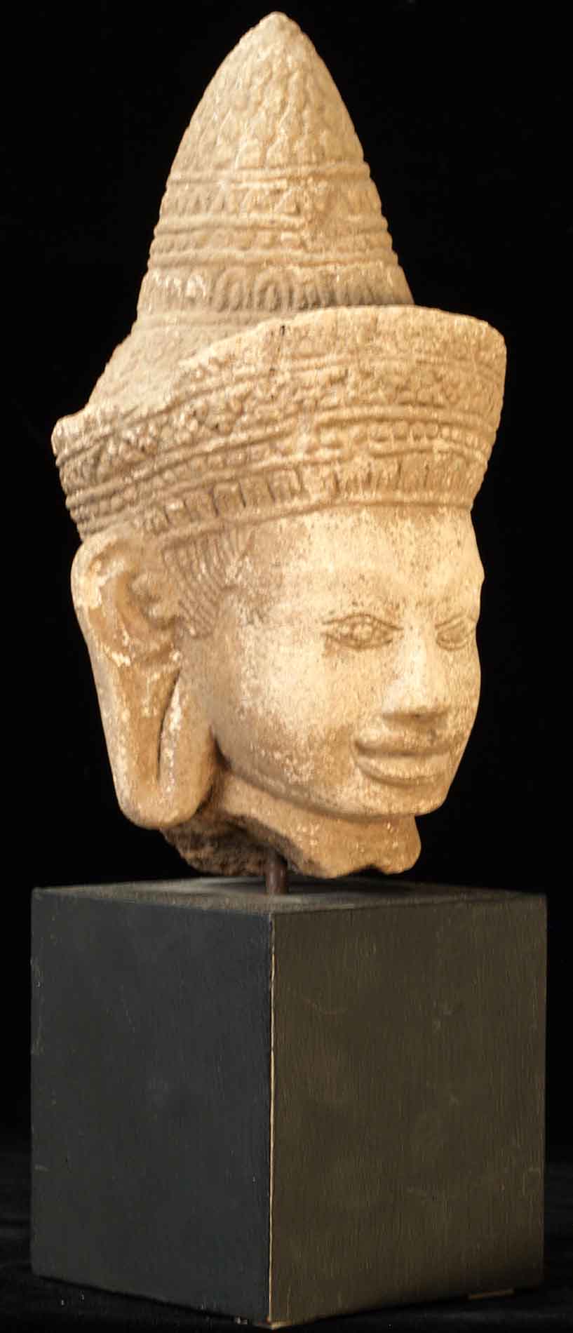 This was collected 35 years ago in Thailand by a person who was in in Air America (the CIA) in Southeast Asia. I recently bought bought a large part of his estate. This one is probably late 19th or early 20th century in a 12th century style. 10 3/4" X 3 3/4". Some wear and loss. Lovely