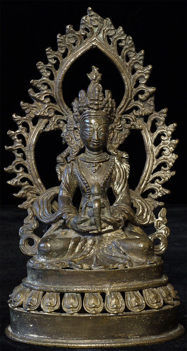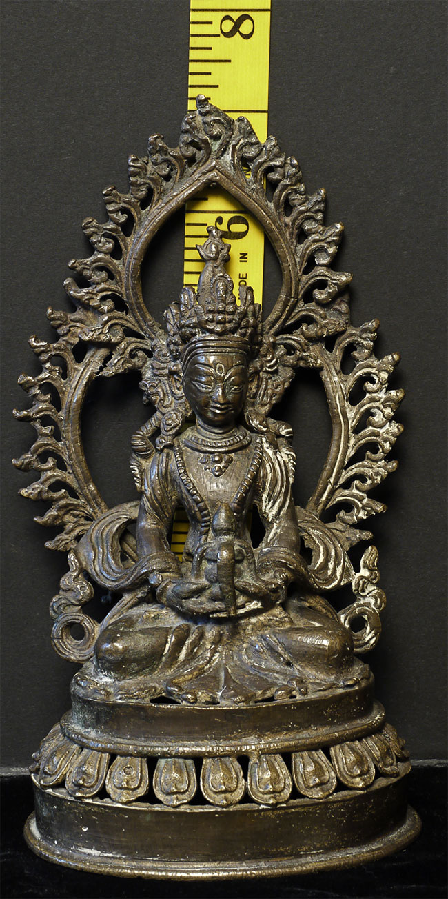 Vintage/Old Nepalese Amateyus -- Bodhisativa of Long Life. Sits 7 1/8" tall. Base is 4" x 3.25"