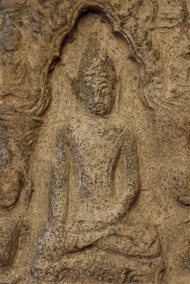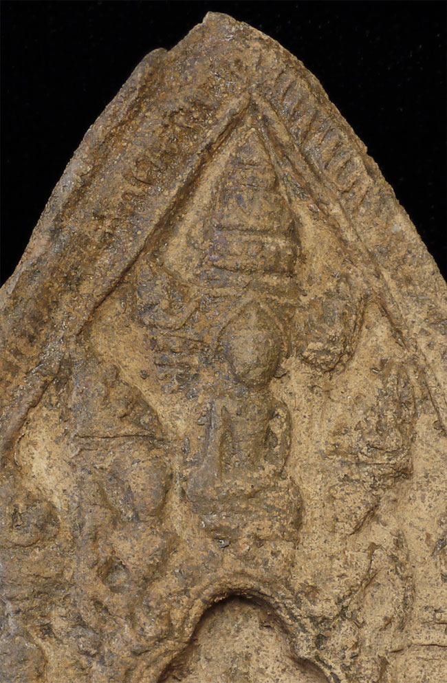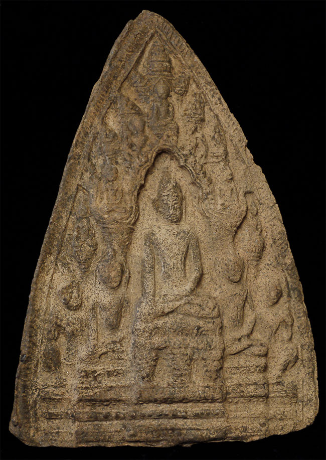 Cambodian Buddha Tablet. Possibly a period (12/13thC) piece, though these have been emulated for centuries. An nice example. Some wear and loss. From a group of pieces I sold to a friend long ago that I recently re-purchased. Stands 5 inches tall