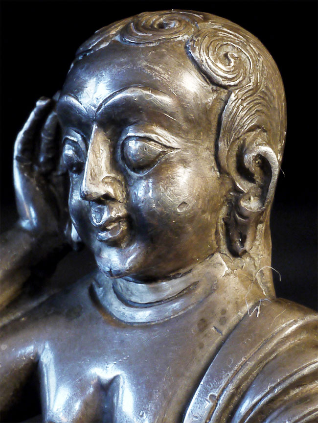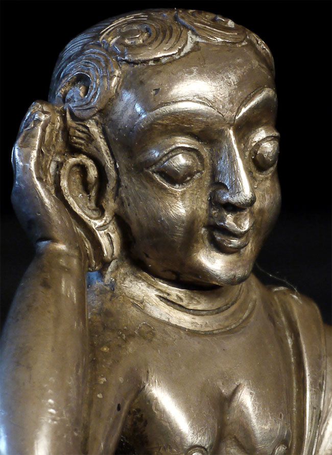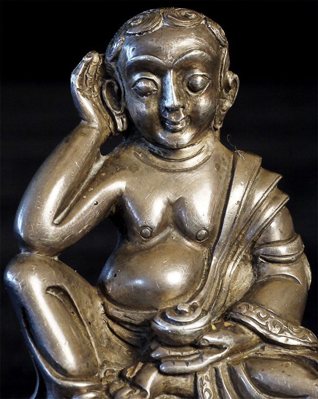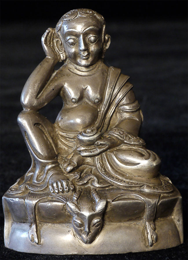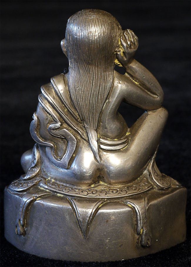 Antique Tibetan silver, Milarepa. Purchased many years ago from the personal collection of a respected dealer who was selling some of his long time favorites to fund a renovation project. 2.25 inches tall, 1.75 inches wide, 1.25 inches deep.