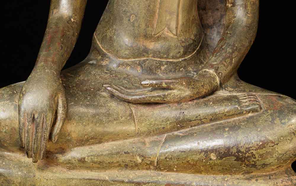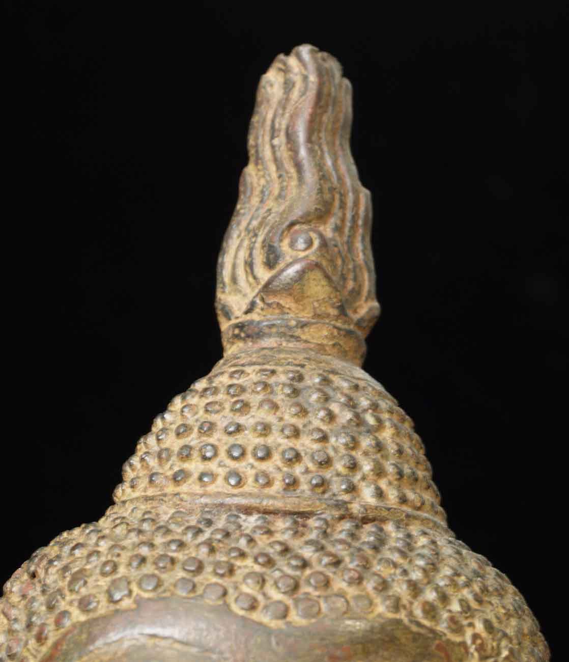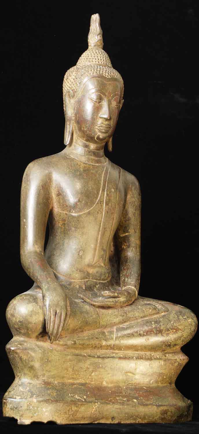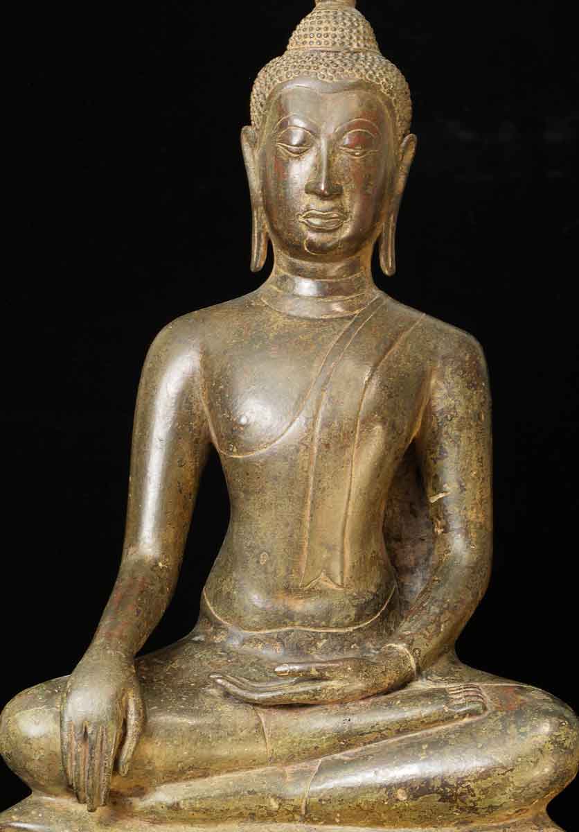 This is a quite large late 'Utong C' Thai Buddha. It stands a full 18 inches tall by 9 inches wide. It is in remarkable condition, with a beautiful patina. Extremely hard to find like this.