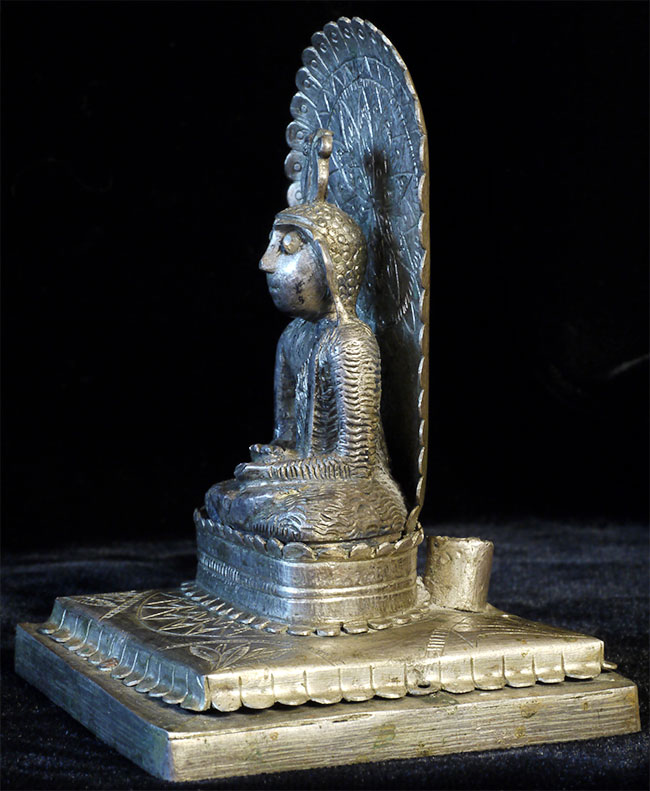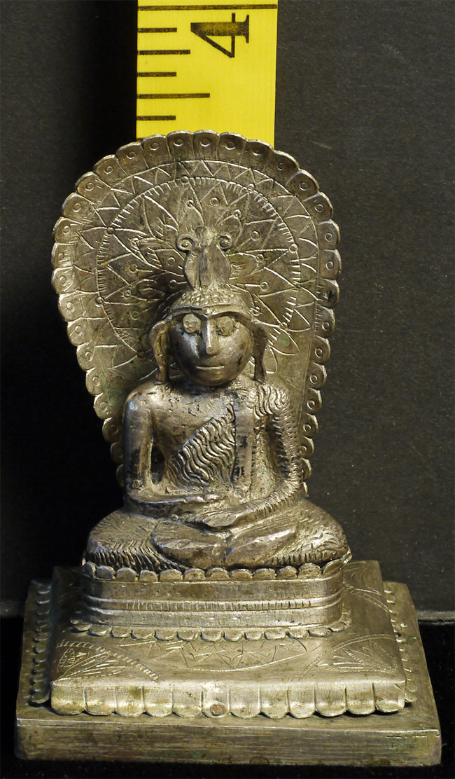 Lankan folk style Buddha. Sits 3.25 inches tall on his altar.Base is 2.25 inches square.