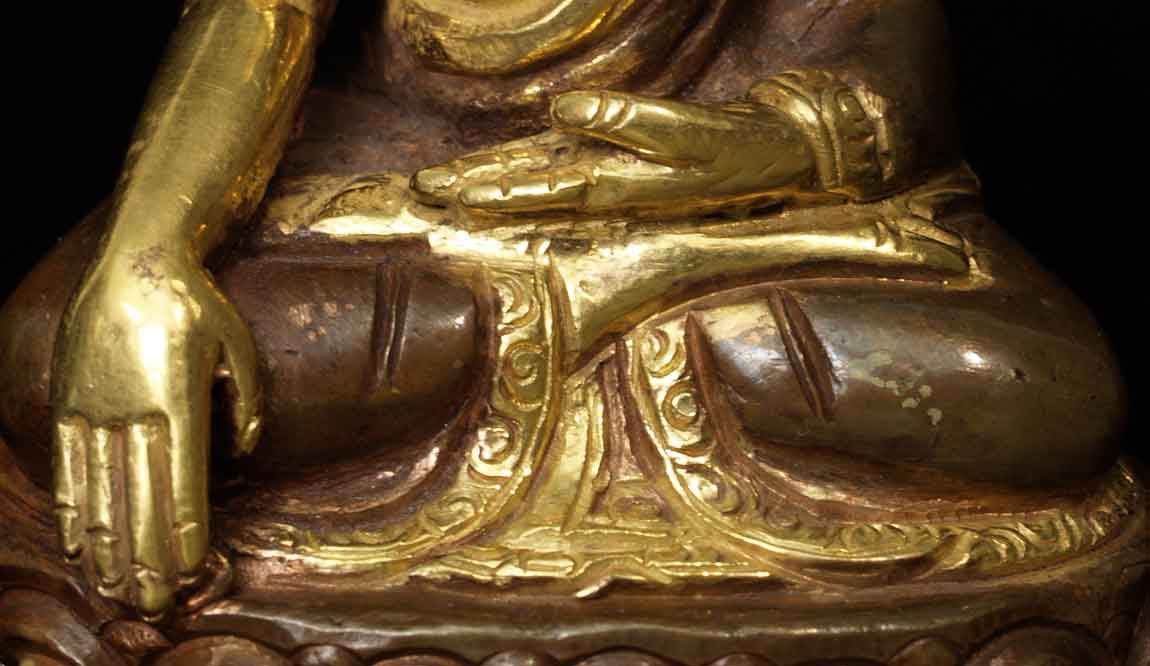 Nice little Buddha - Came to me as part of a collection from an English Country House. Nice detail, nice faces. 3 1/4 inches X 2 1/4 inches. There are 4 related pieces with different mudras- take them all and I'll give a significant discount.