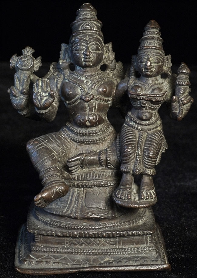Vintage/antique Indian Hindu deity with consort. Stands 3 6/8 inches tall.