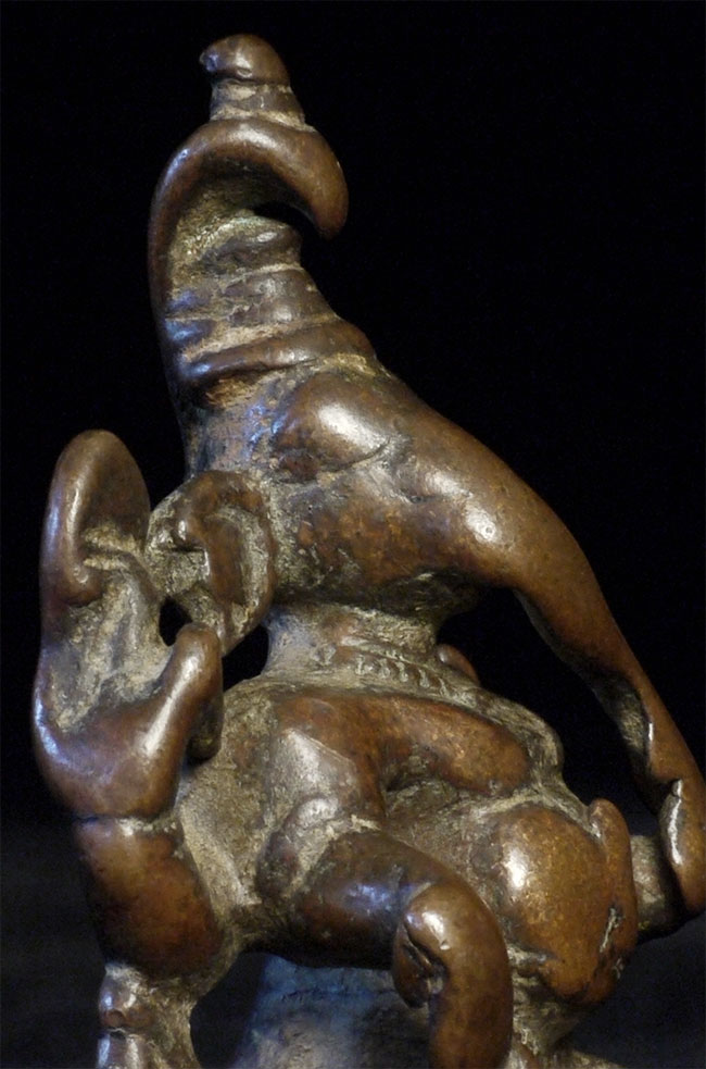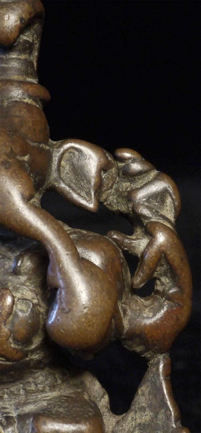 Deeply spiritual antique bronze Ganesha. Special feeling. 2.75 inches tall