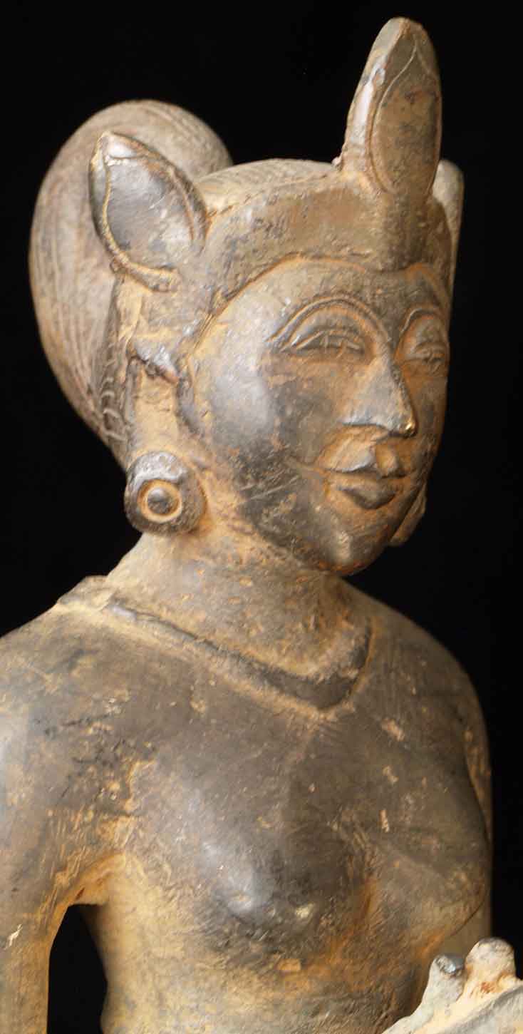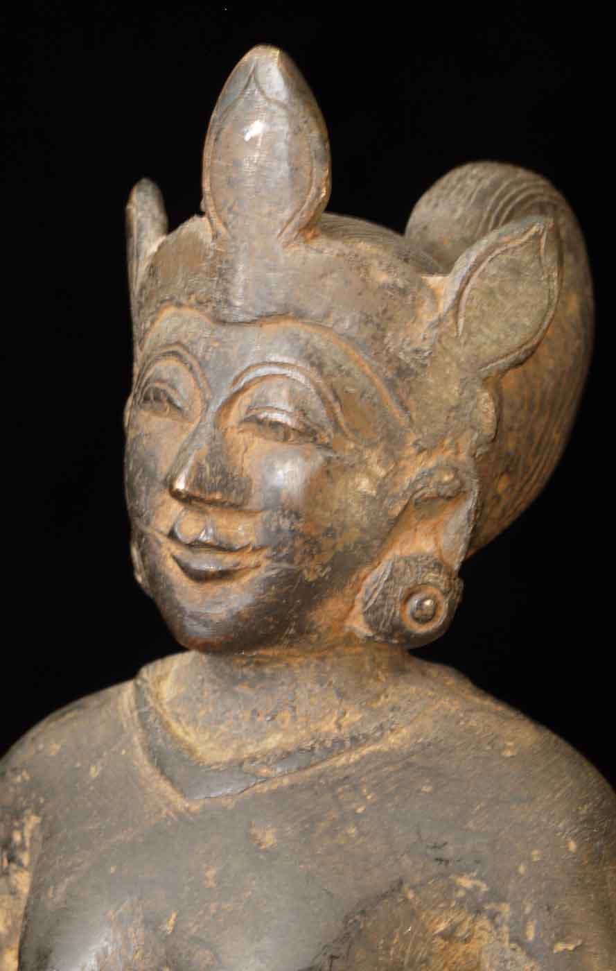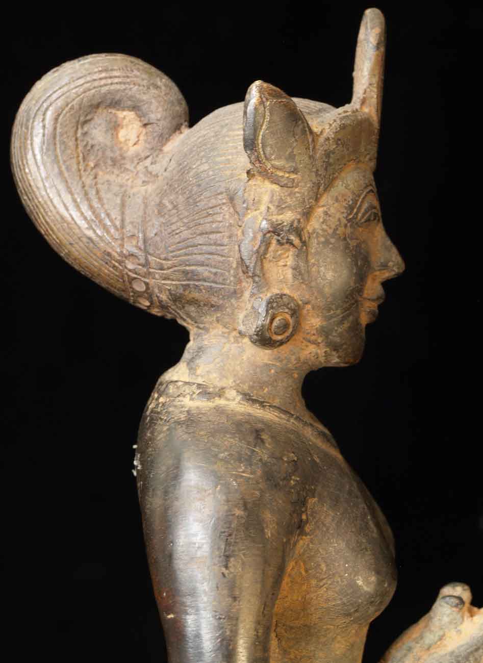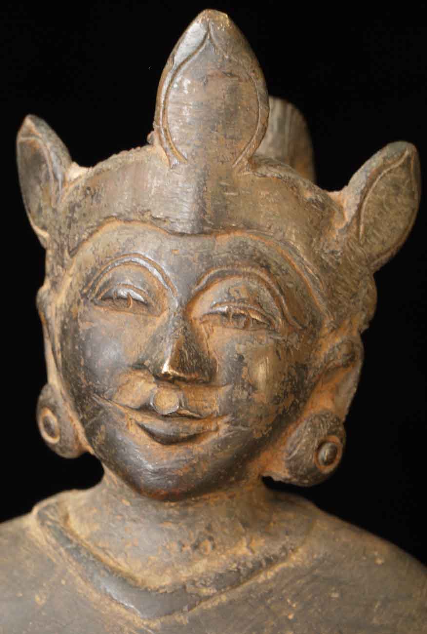 The face is wonderful- it almost has an early Pala style to it. It is either a donor figure or simply a bowing figure to go before a Buddha. The type of alloy is very unusual. It looks to be quite old. I will say 18/19thC, but it may be quite a bit earlier- I don't have books which show this type of piece. I've not had another like it. It stands 8.5 inches tall