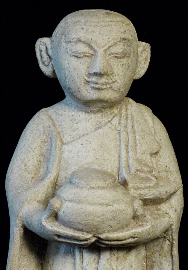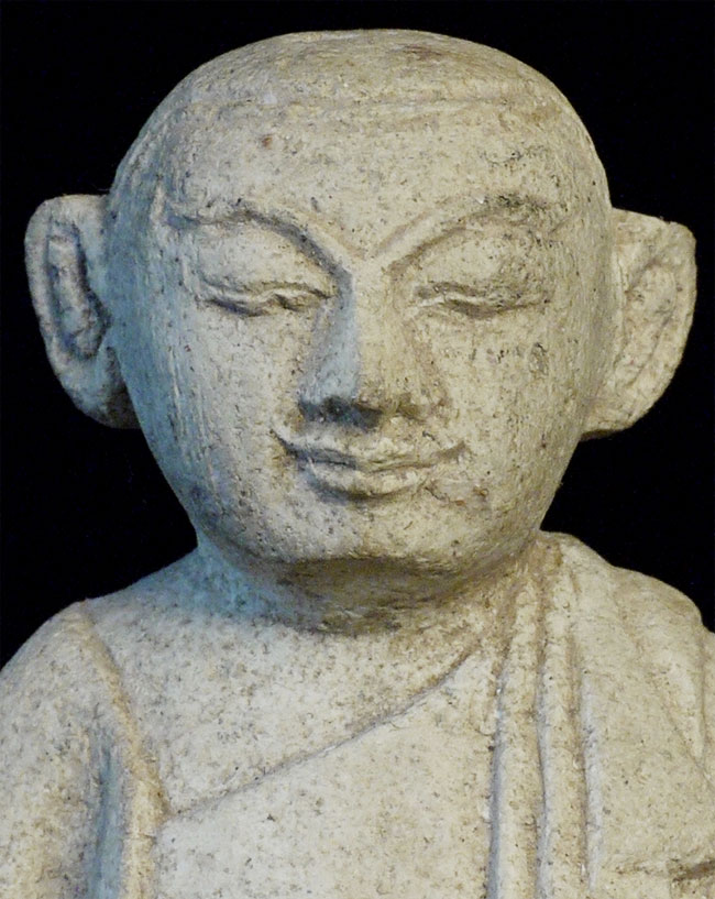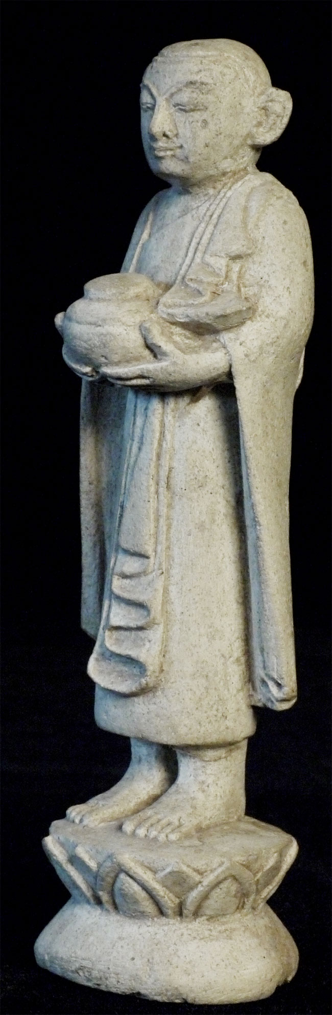 Cute vintage Burmese stone Monk. Chip to robe. Great face. 4 3/8 inches tall.