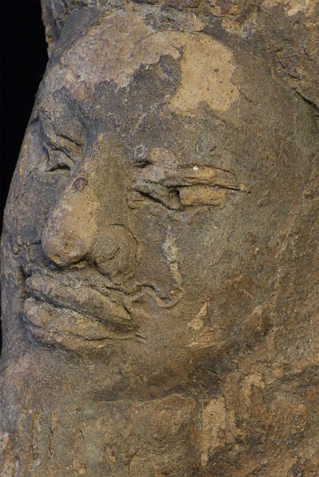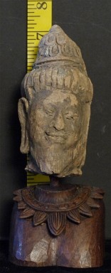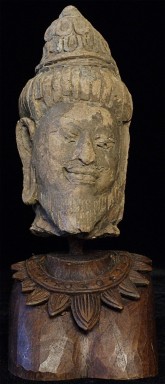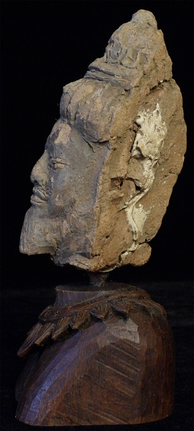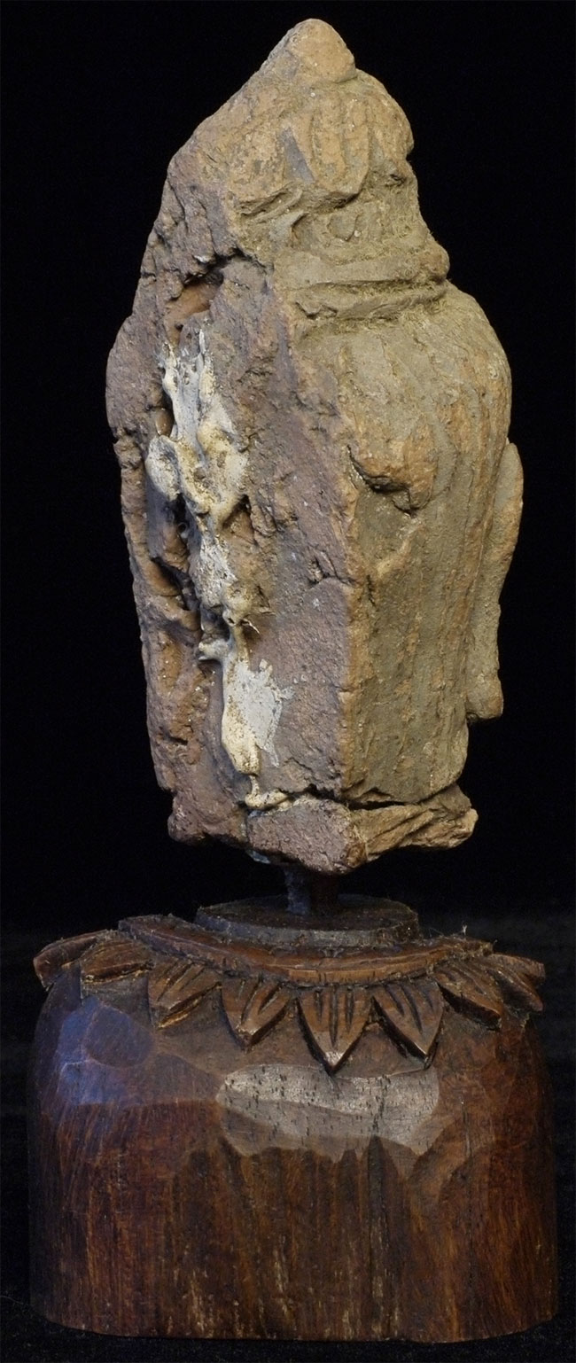 Wonderful Buddhist monk/teacher known as “Lu-cee”. Sensitively modeled, very powerful presence. Probably late Haripunchai. 5 inches tall, 7.25 with the delightful base. Rare.