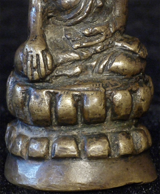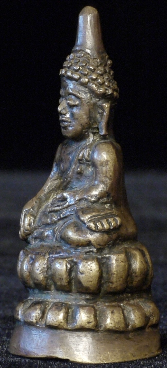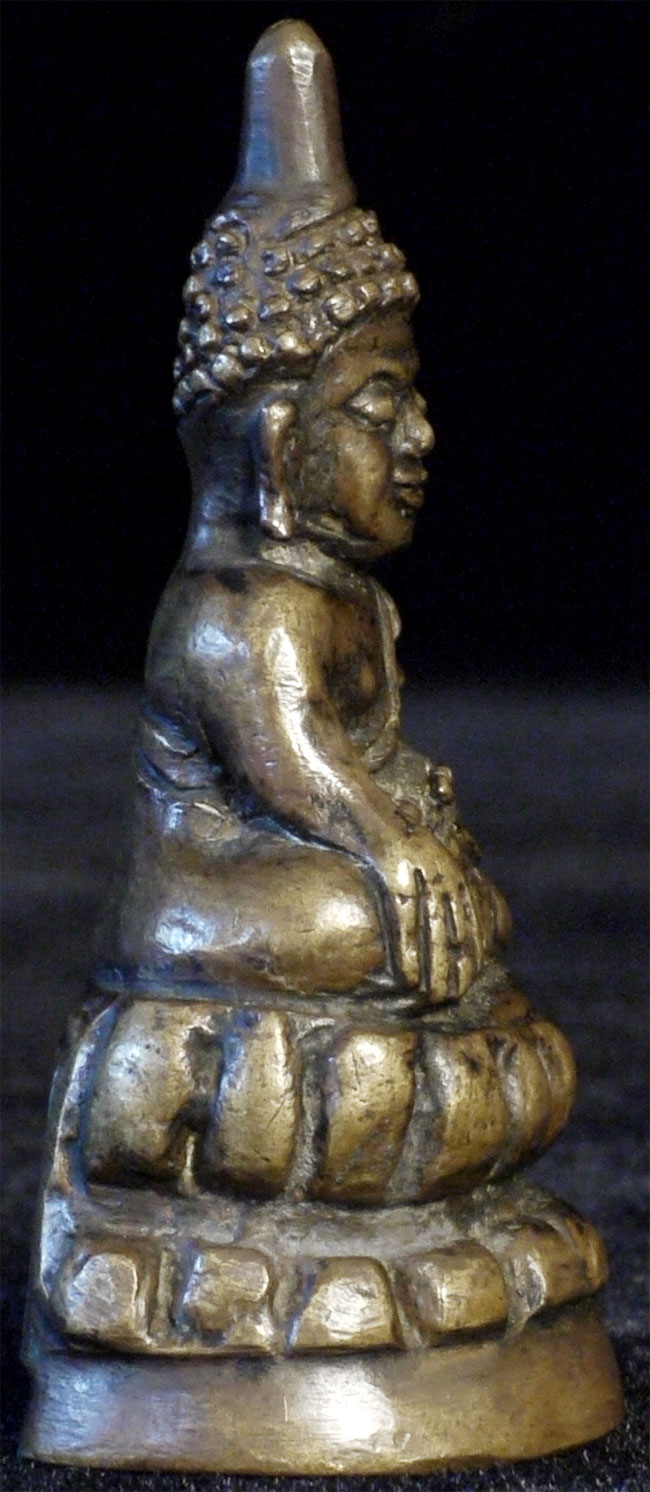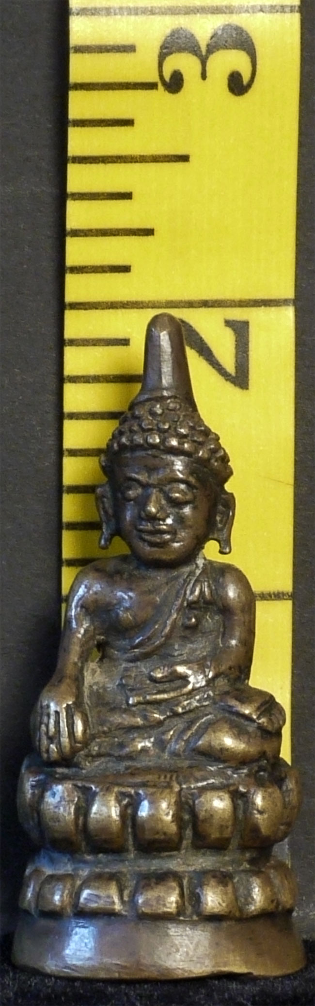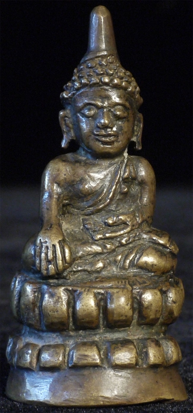 Distinctive antique Burmese Buddha from a tribal area. I've been told this type is from the Ngiao people (unsure of spelling). Rare type, especially in this diminutive size. Sits 2 inches tall and full of charm and sweetness!