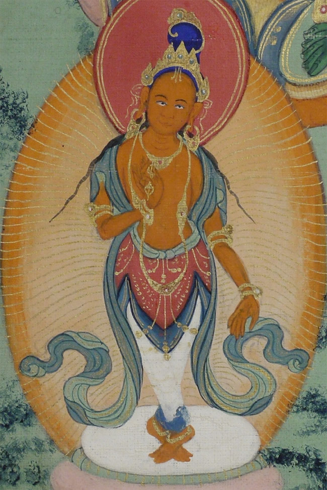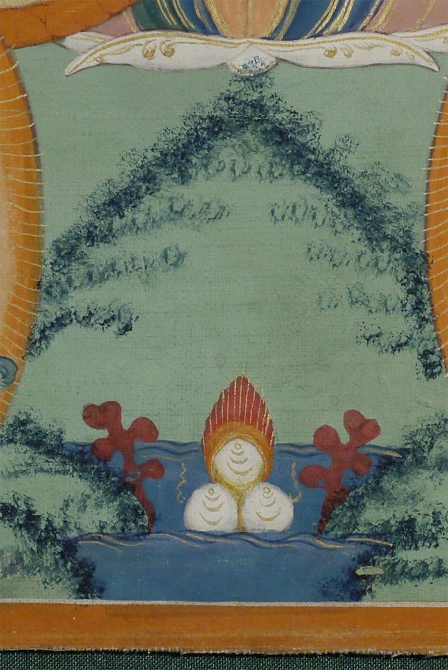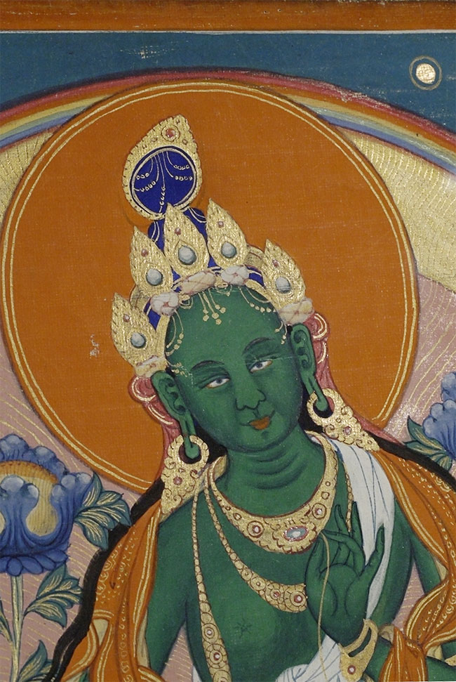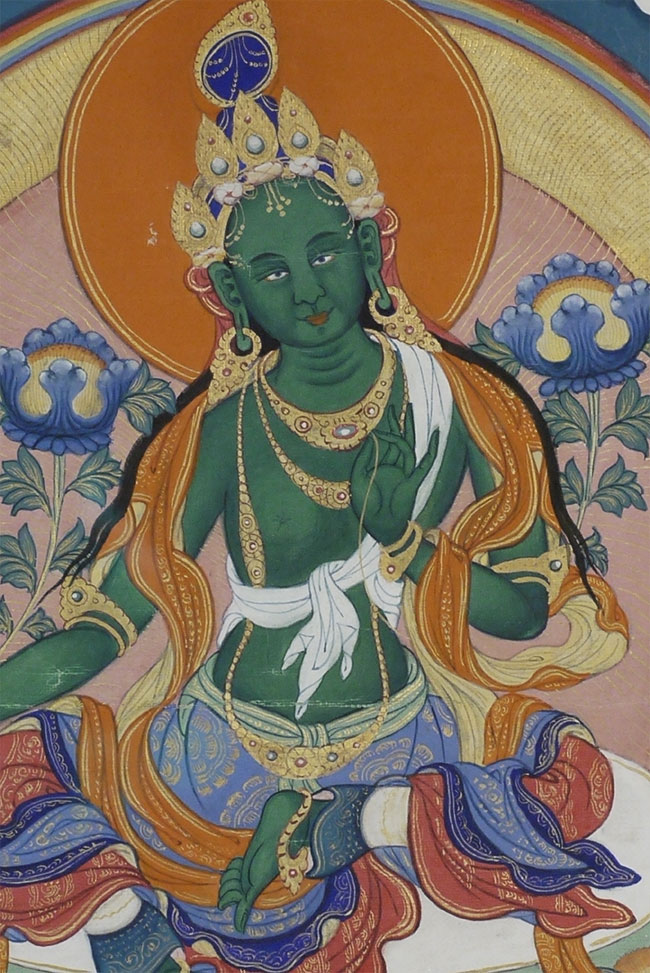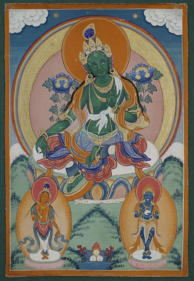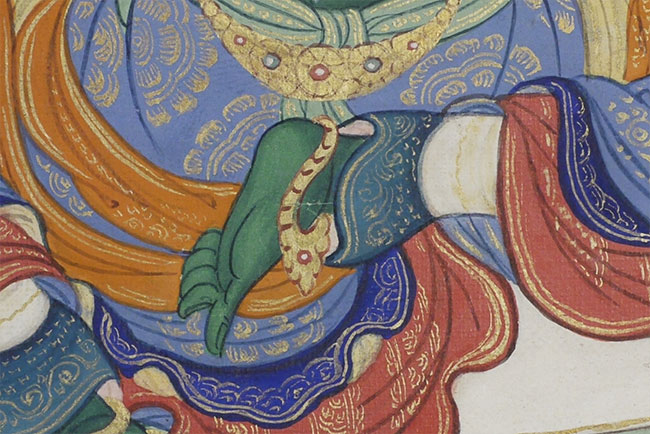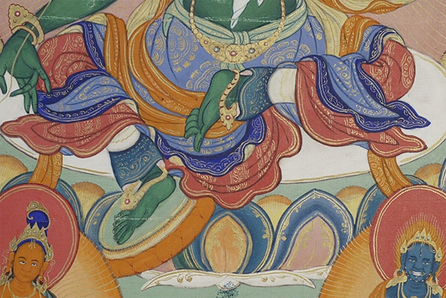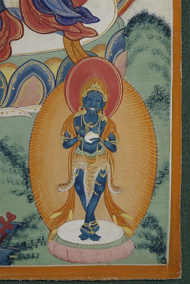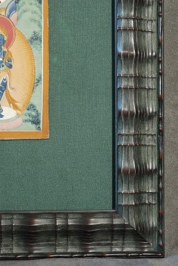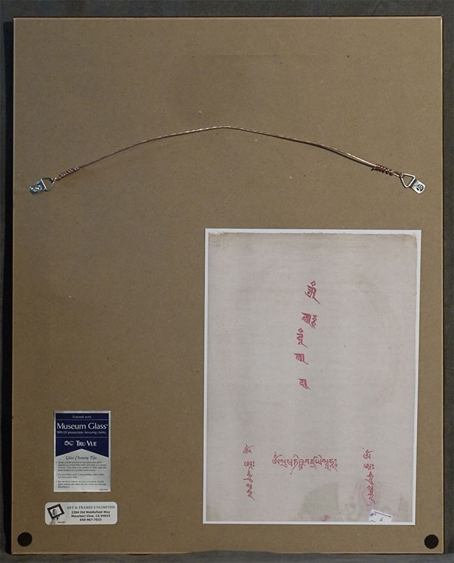 Very fine old Mongolian Thangka. Purchased in the 1990's when high quality clean examples were available on the market. Superbly framed with silk mat and museum glass. Is 8 x 11.75 inches, custom frame measures 16 x 20.5 inches. Very beautiful.