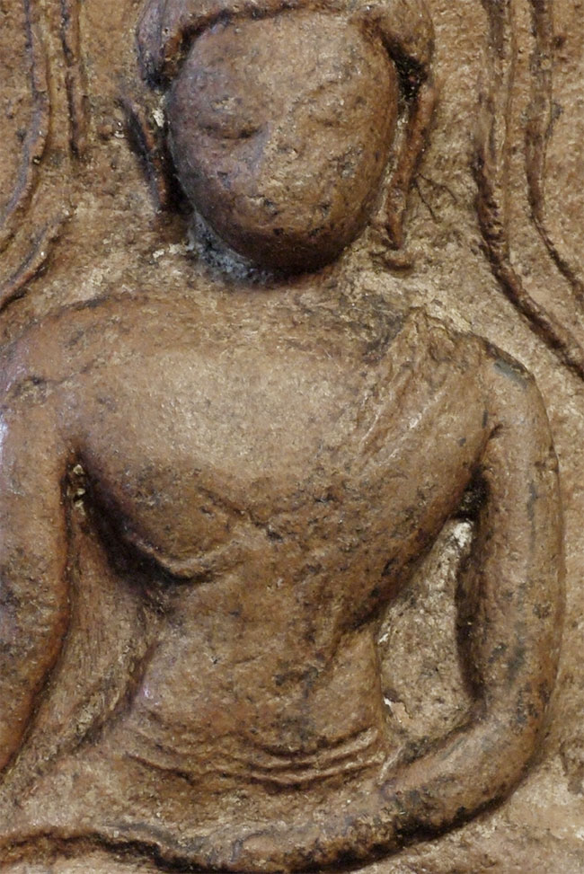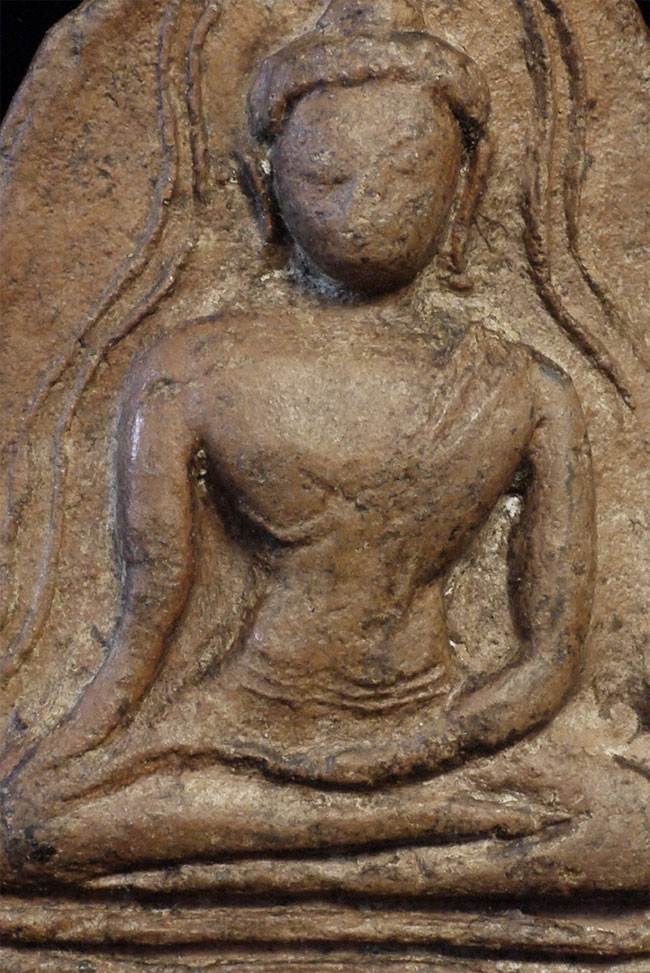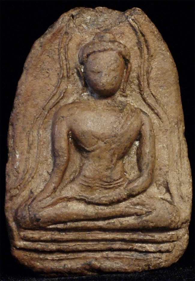 Extremely old Cambodian or Thai Buddha amulet. 13/14thC or later. Stands 2.25 inches tall.