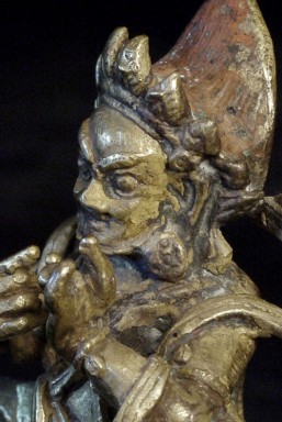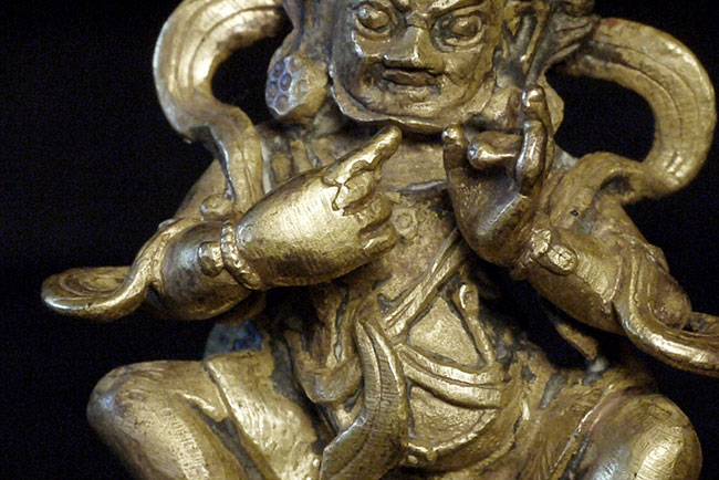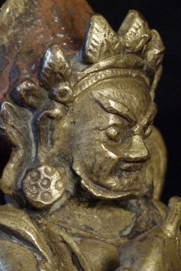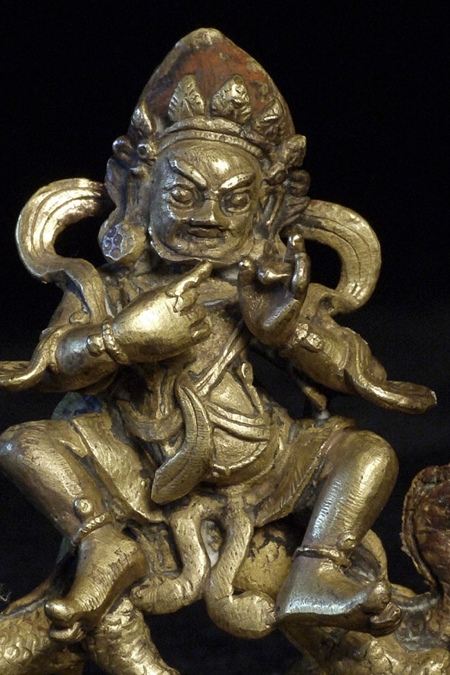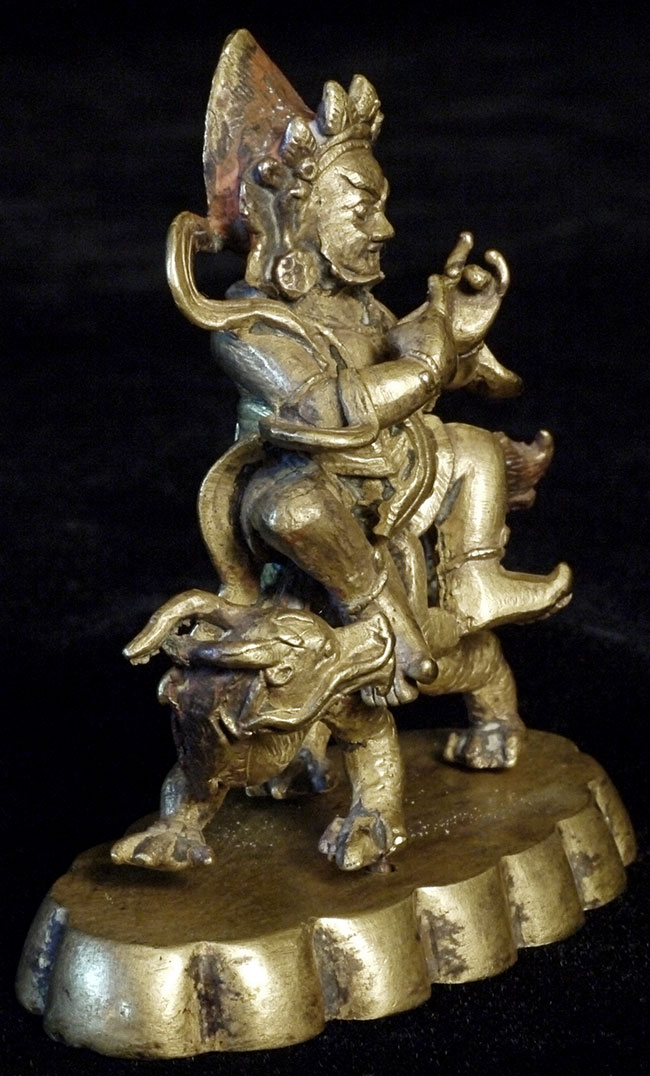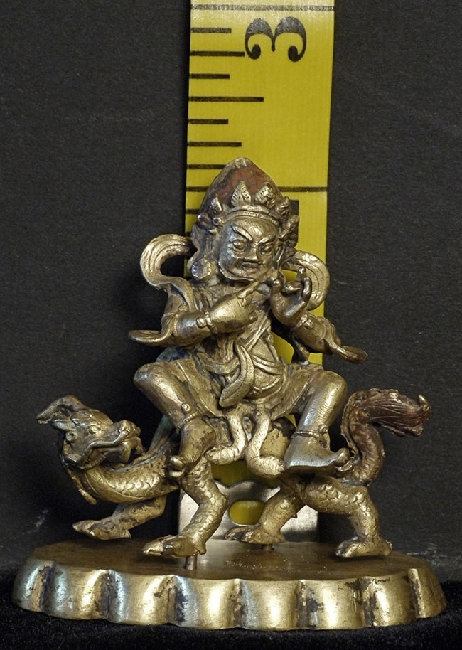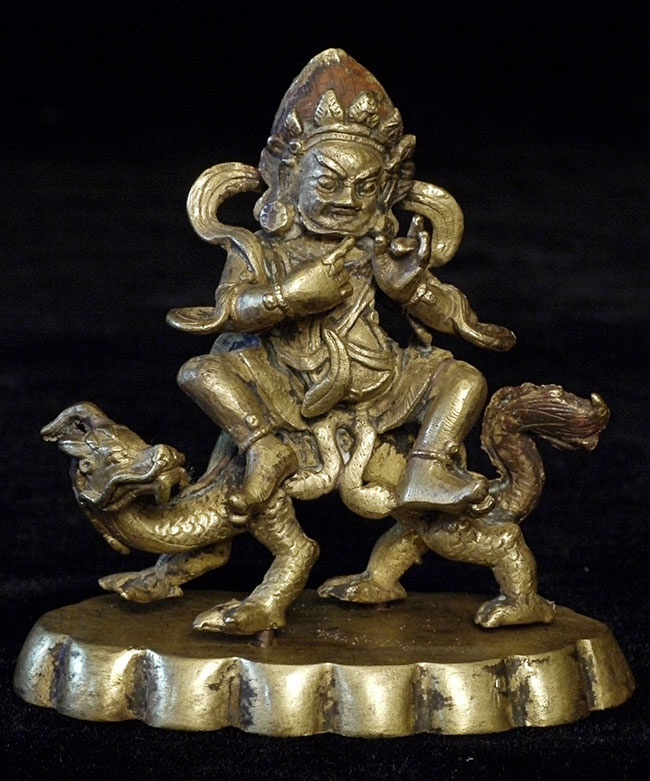 Rare 18/19thC Tibetan Fierce Deity on Dragon. Base is solid-cast. Sits 2.25 inches tall -- exquisite!
