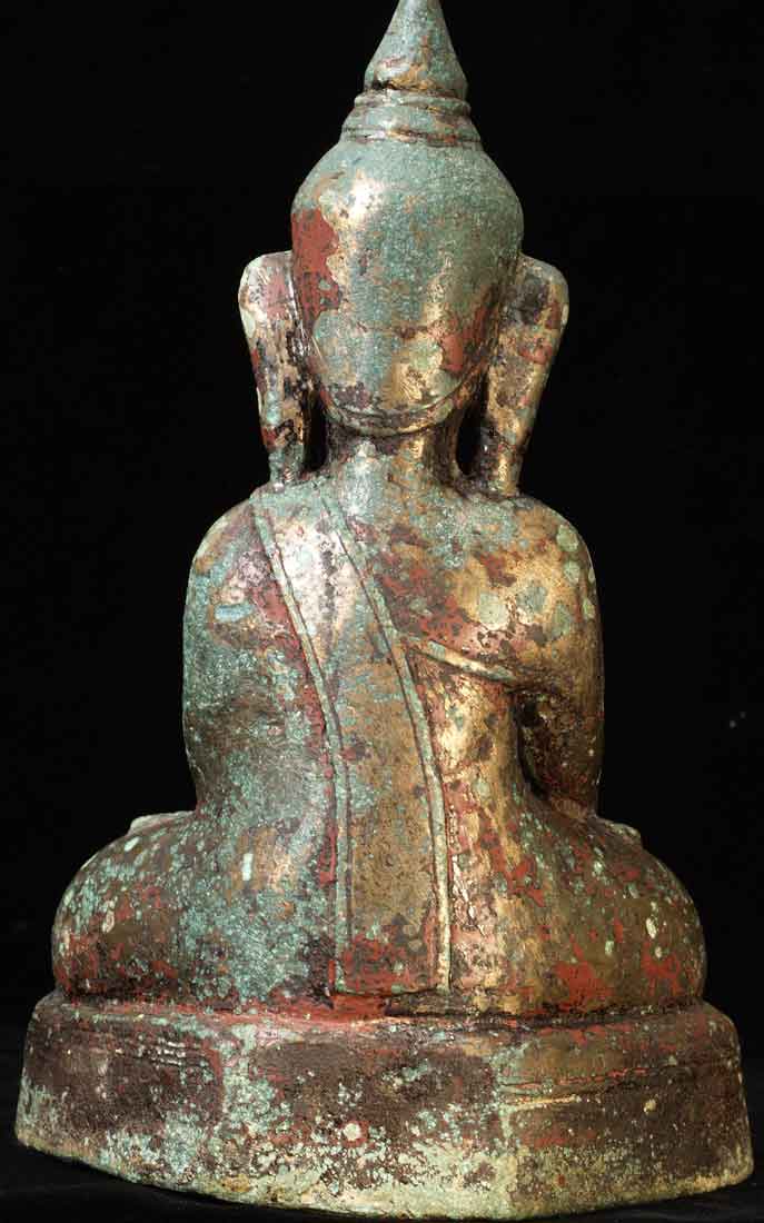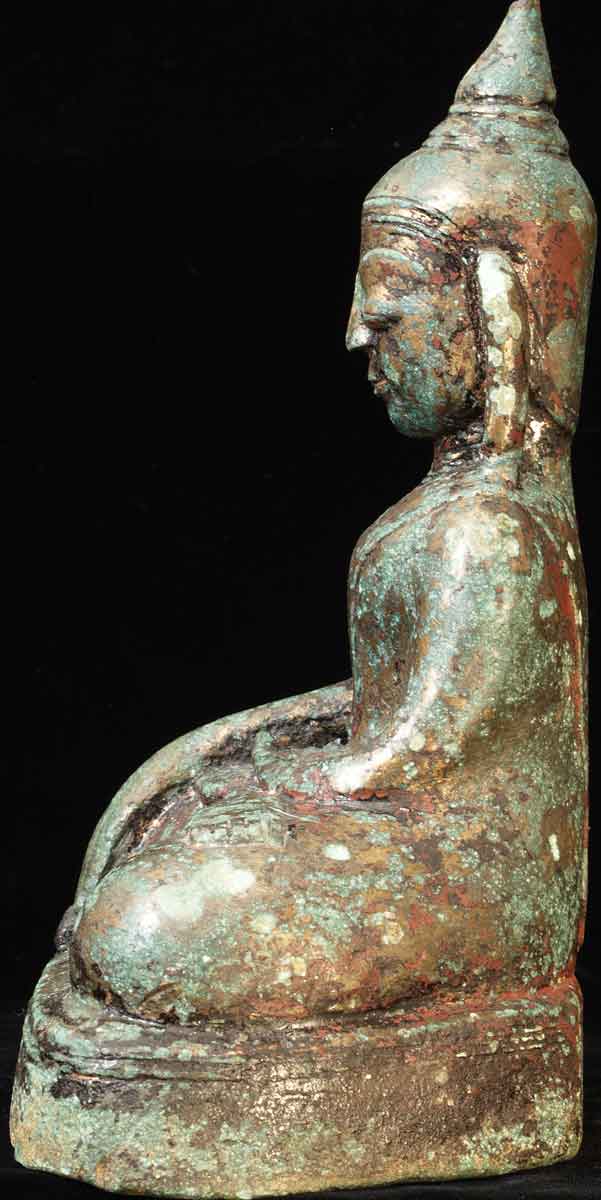 One from my personal collection which I am moving over to "for sale"- Remarkable and quite rare Mon Buddha from Burma- I’ve only ever seen very small Buddhas of this type- this one is extremely heavy ( much of him is solid cast). He is 10+ inches tall and incredibly heavy. Highly complex partially cleaned patina. Funny looking to most people- beautiful to me!