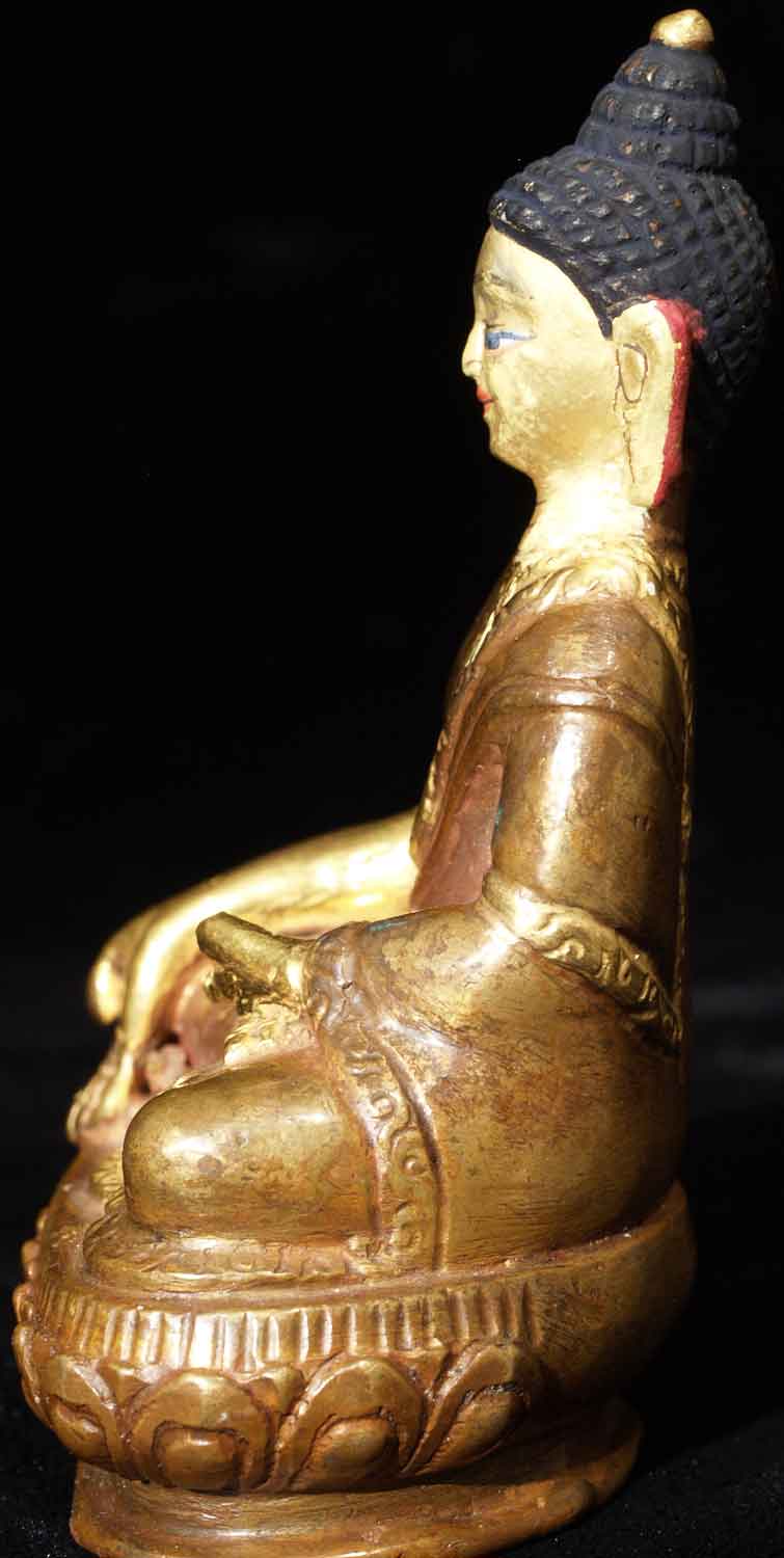 Nice little Buddha - Came to me as part of a collection from an English Country House. Nice detail, nice faces. 2 1/4 inches x 3 1/4 inches.There are 4 related pieces with different mudras- take them all and I'll give a significant discount.