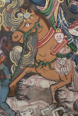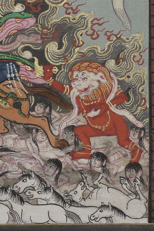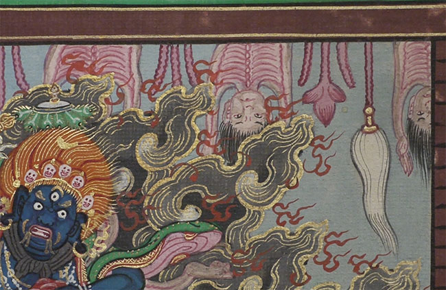 Very uncommon Mongolian thangka custom framed with museum glass. I've sever seen another like it. Thangka measures 6.75 x 9.5 inches, frame is 14 x 17 inches.