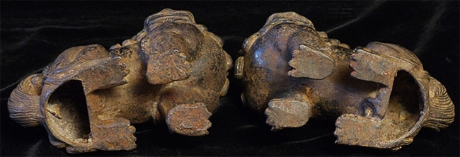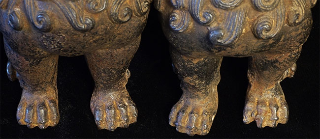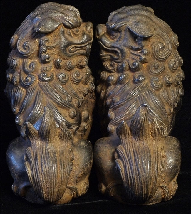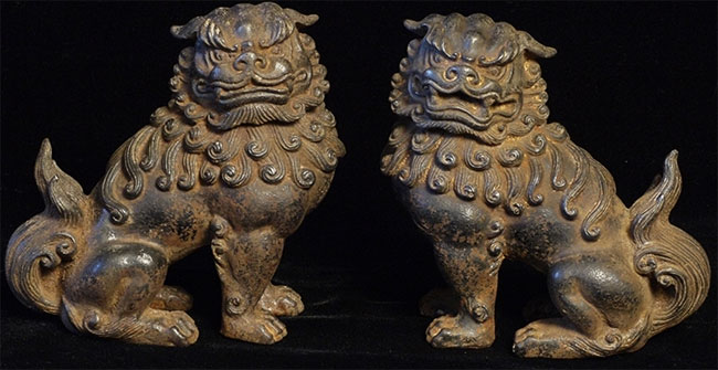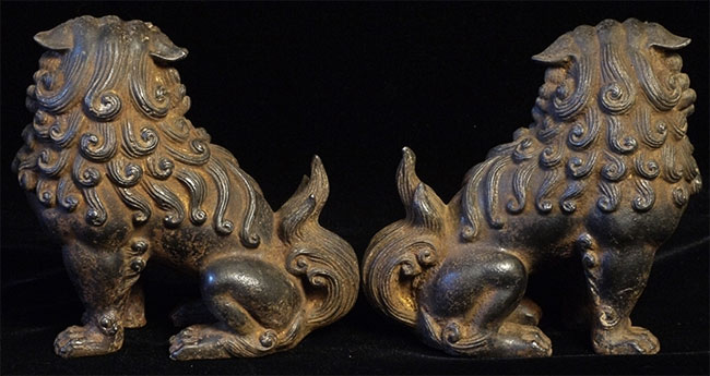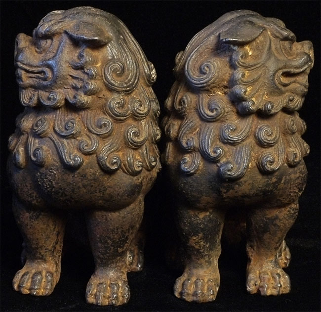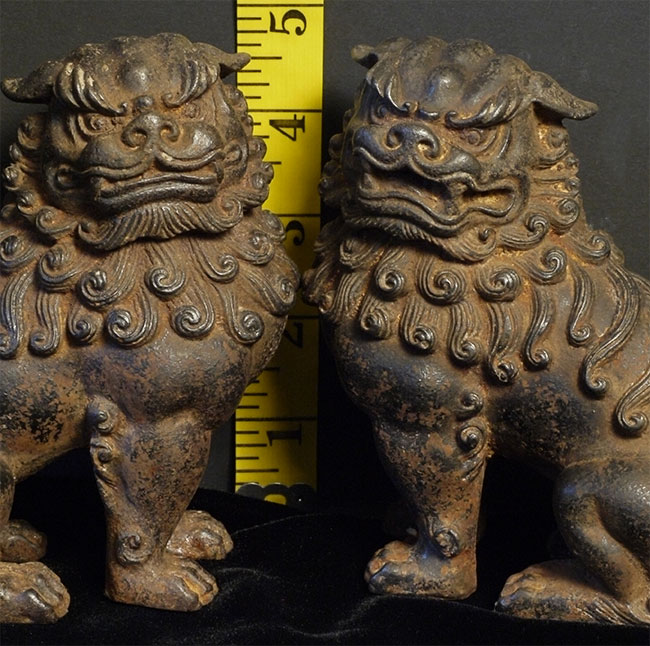 Pair of antique Japanese (?) iron Fu Dogs. Beautiful detail. Each of the pair is 5 inches tall