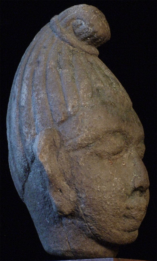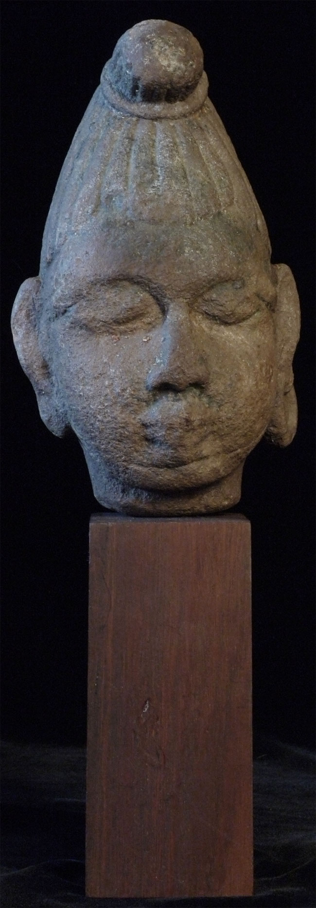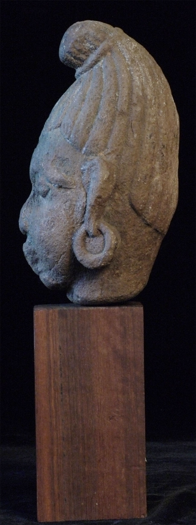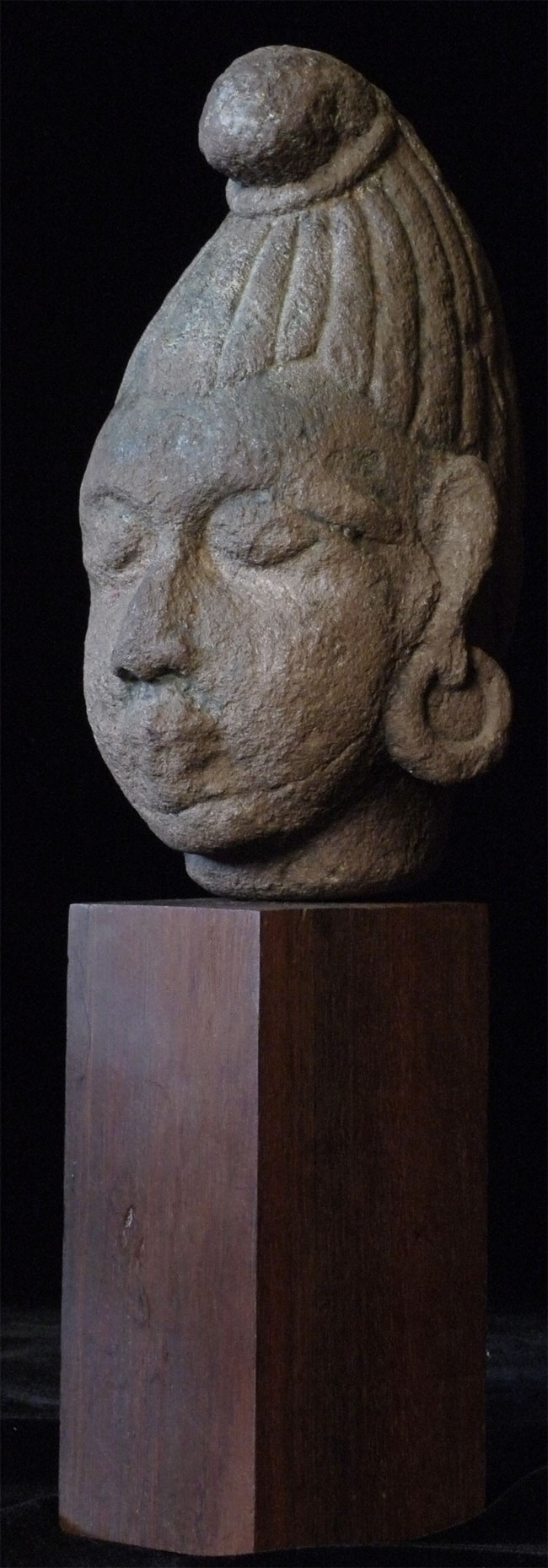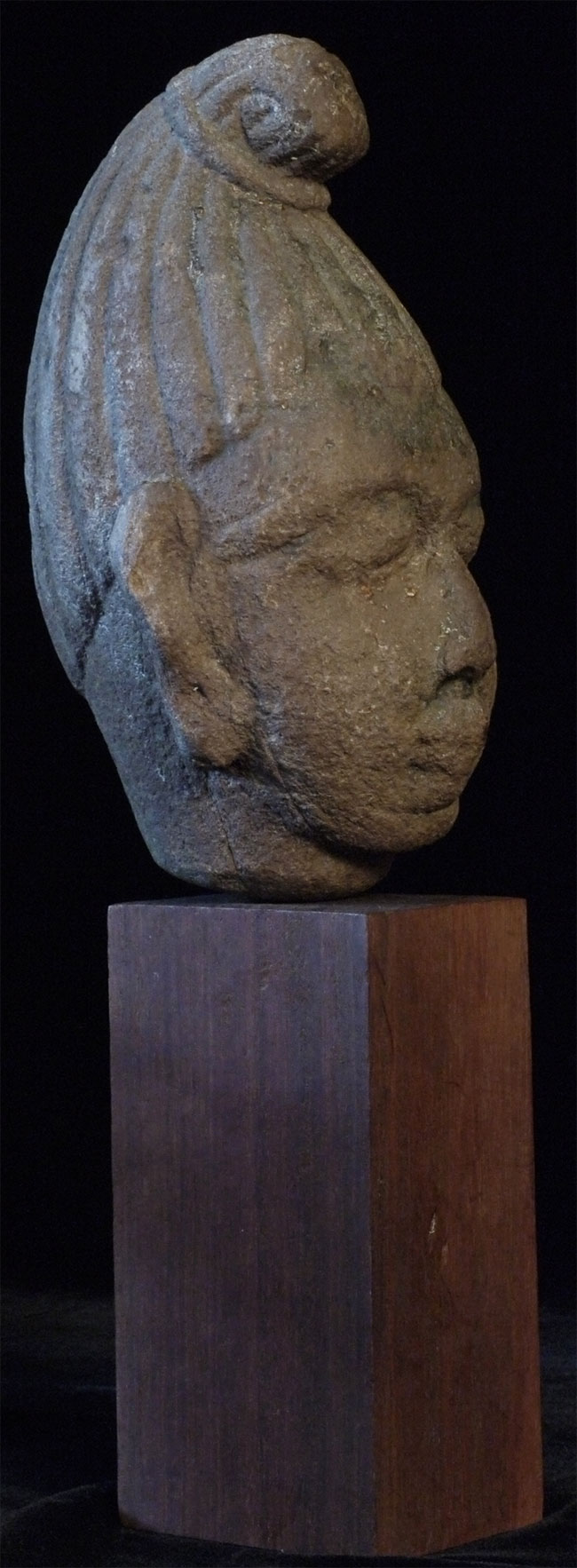Sensitively modeled early Chinese Asian stone head. Looks to be quite early. The Head is 7.25 inches, and on the stand, the total height is 12.75 inches. I am unsure of the origin, but recently saw a closely related head carved in a black stone selling at a reputable auction house with attribution of being very early (Pre-Tang) China.