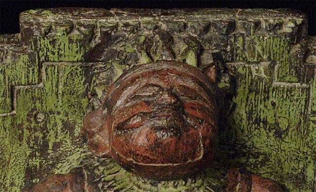 18/early 19thC Sri Lankan sculpture of the last great King of the Kandy Kingdom of Sri Lanka. Most of the great Kandy style Buddha images were made during his reign in the late 18thC. Sits 9 inches tall, 8.5 inches wide, 4.75 inches deep. Loss of one ear. Wonderfully expressive. Rare piece.