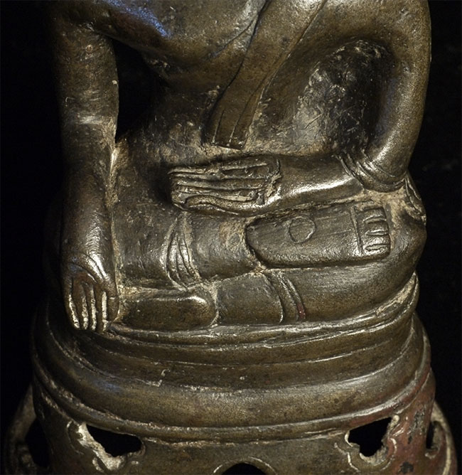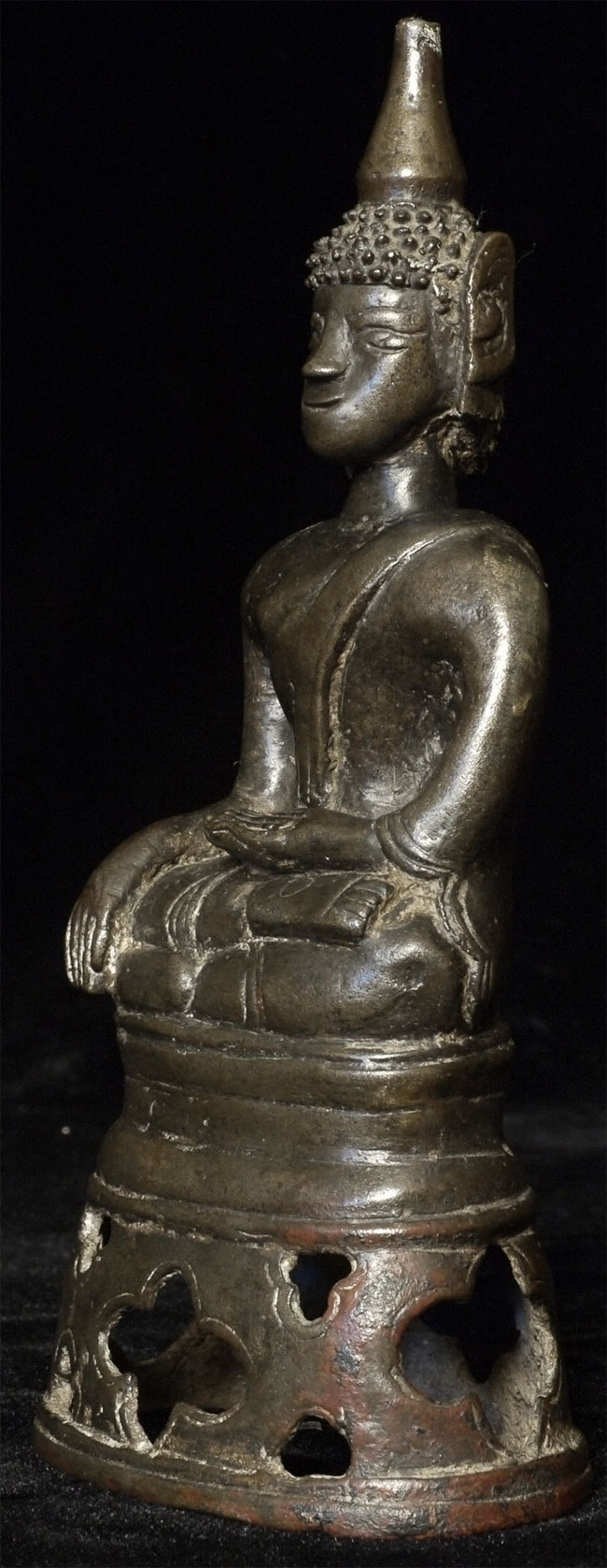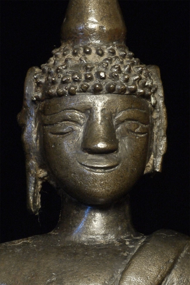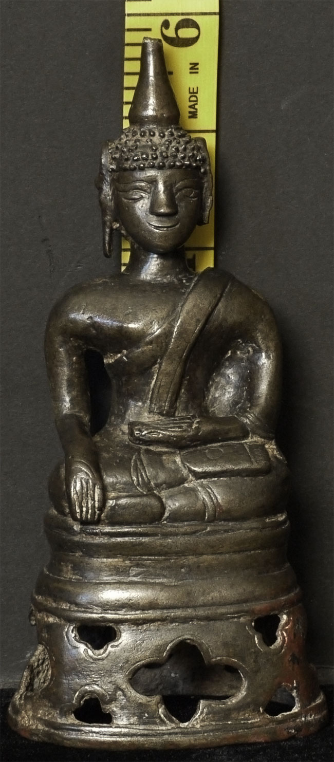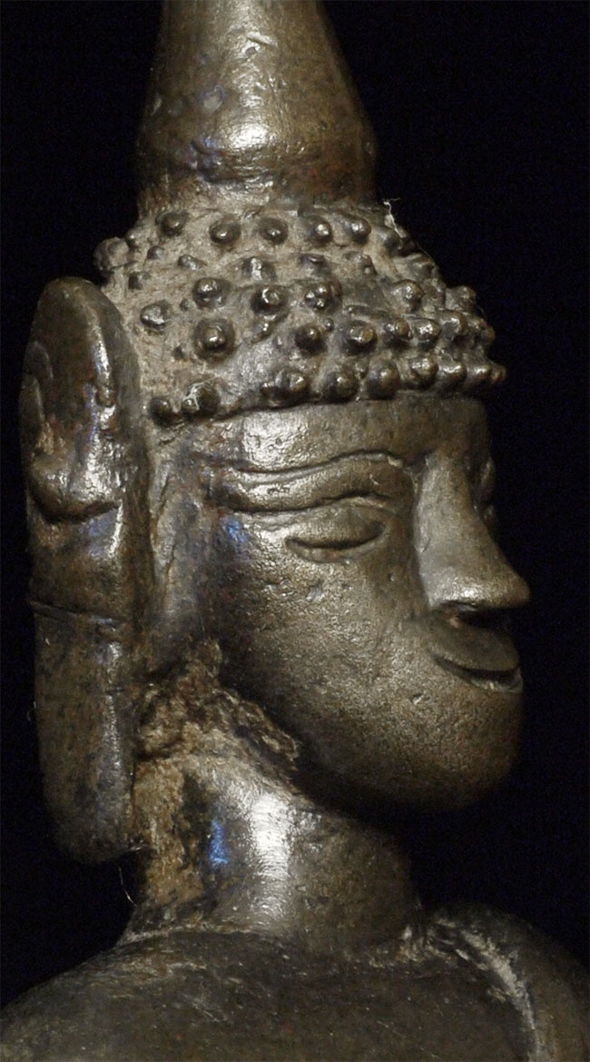 Antique Laos Buddha with very good age. Missing one earlobe. Lots of personality. Sits 5.75 inches tall.