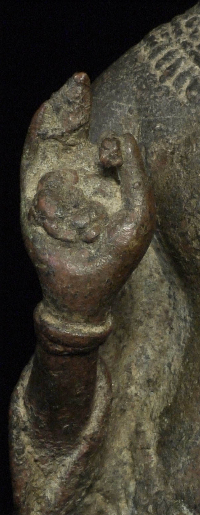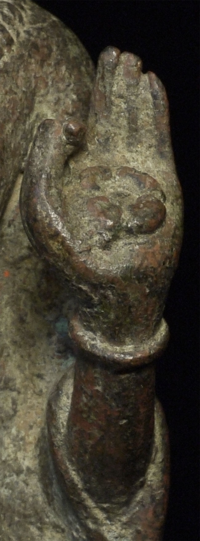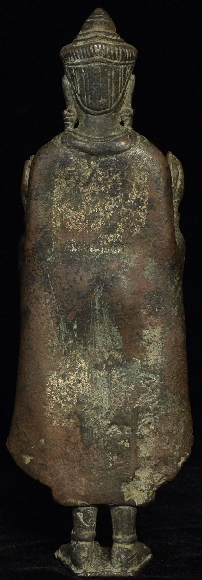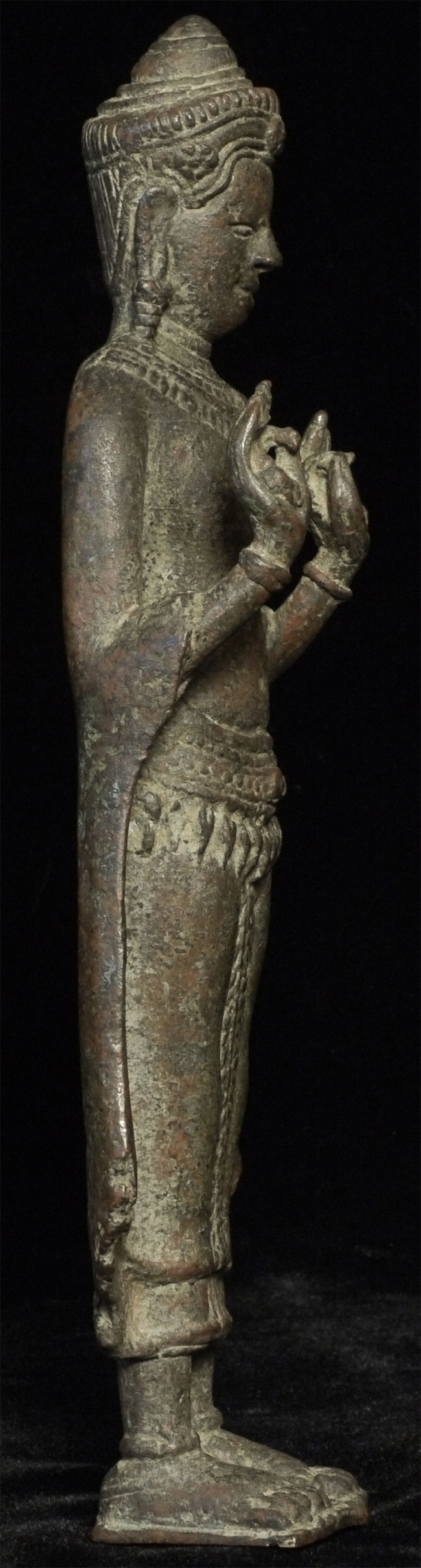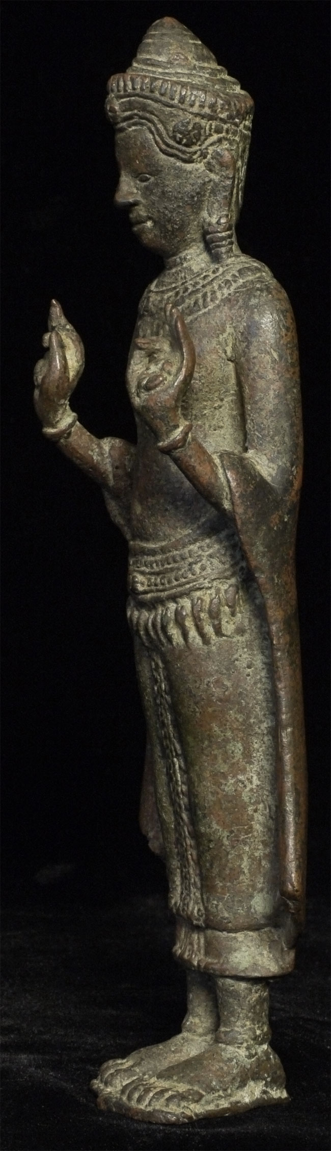 Exceptional 12/13thC Cambodian Buddha. Traces of original gilding remain. Outstanding condition. Stands a full 8 inches tall without any base. A personal favorite.