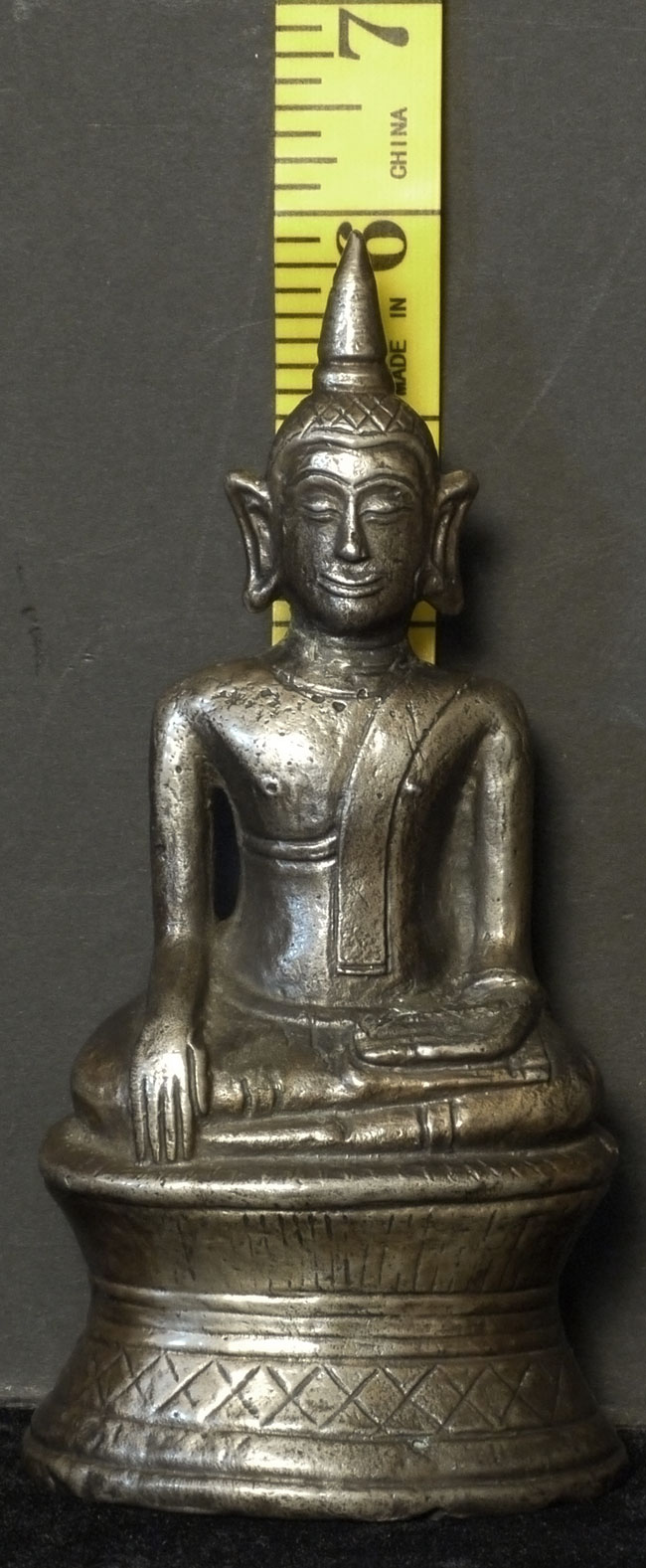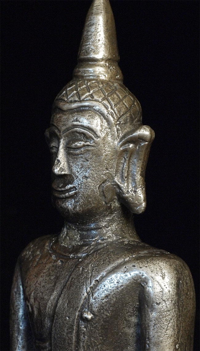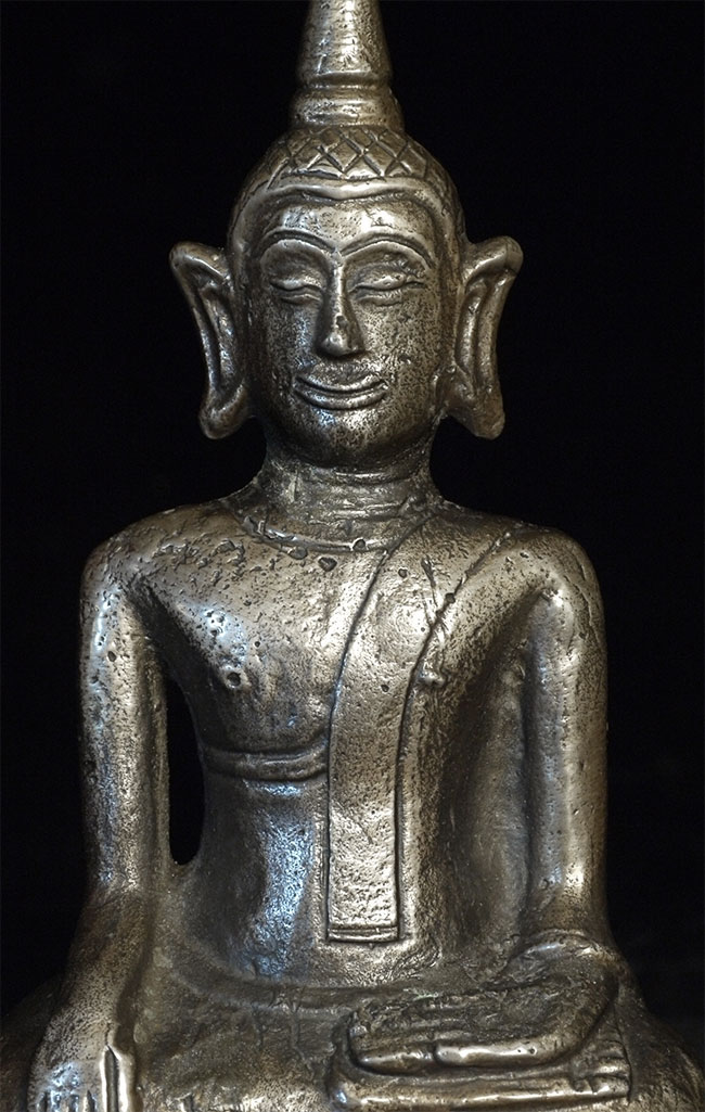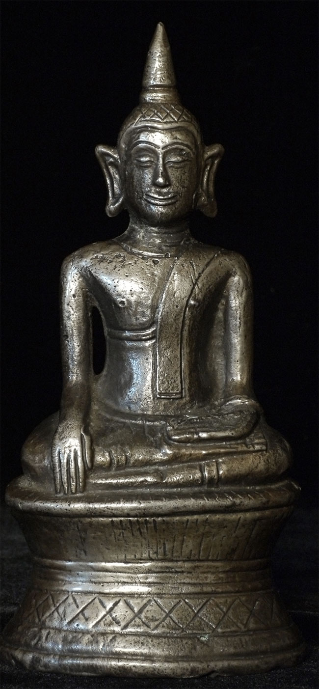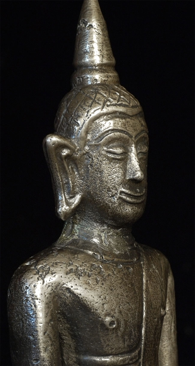 18th-19thC Laos bronze Buddha. This piece measures 6" tall.