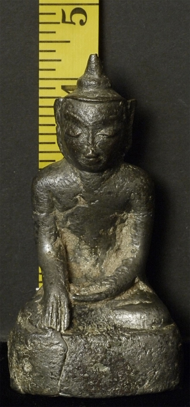 Very nice Mon style Budmese Buddha. Four inches tall. Rare type.