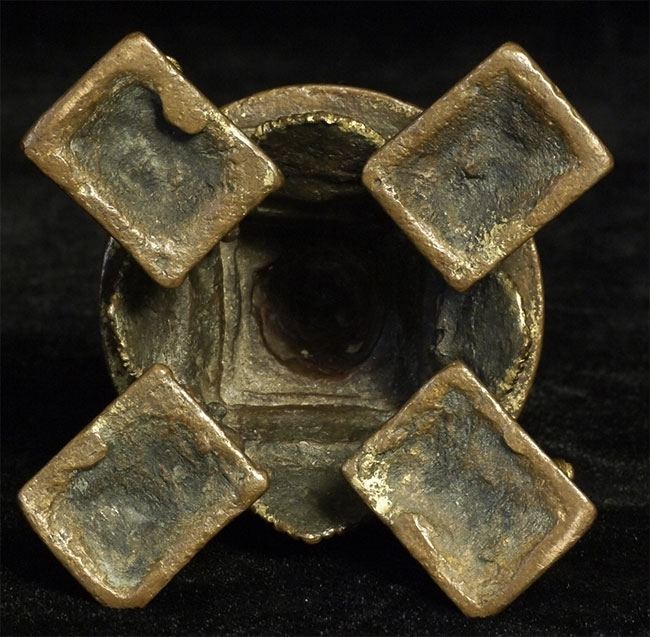 Rare 16thC Nepalese Yantra. 2.75 inches tall, approximately 2 1/4 inches square on bottom