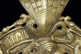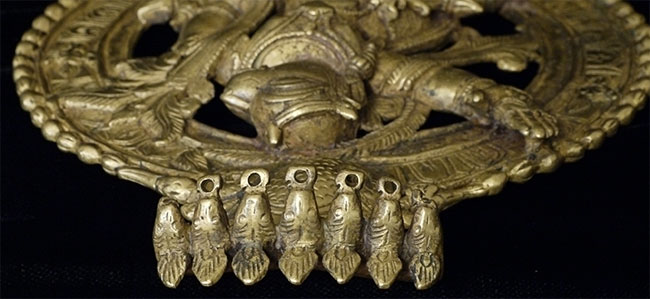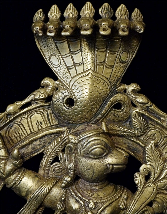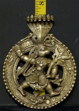 Antique Hanuman Chest Plaque. Quality example of its type. Height of 7 inches to top of nagas, diameter of 5.5 inches. Nice weight.