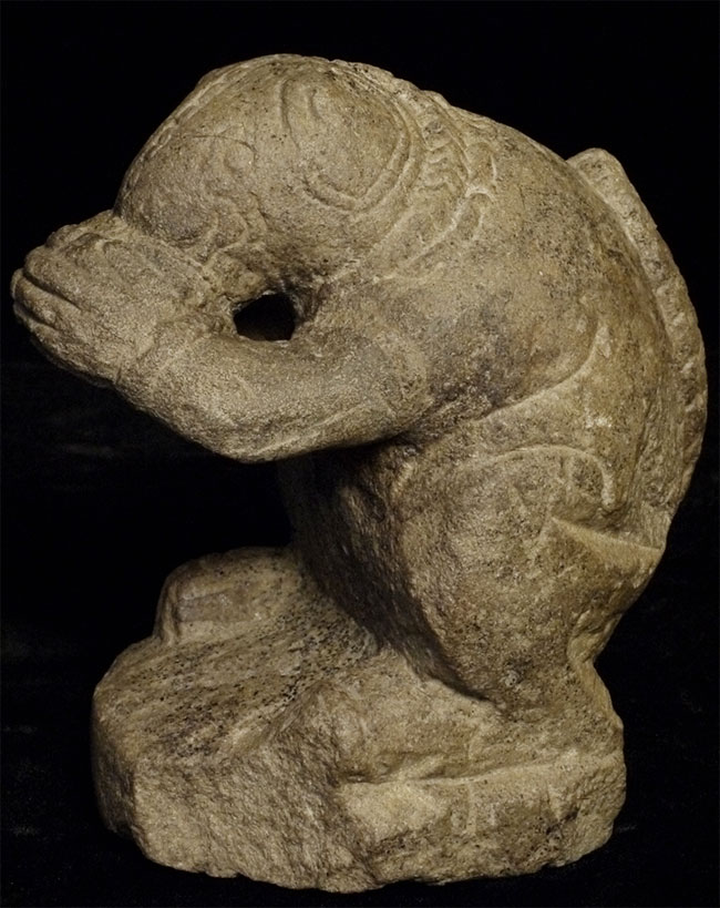 Burmese squirrel, given to me as a gift many years ago by a Burmese friend. He says it was found in the area of a 15thC "Pegu" ruin in the forest in the 1940's. I have no way of dating or verifying. Sits happily at 5 inches tall.