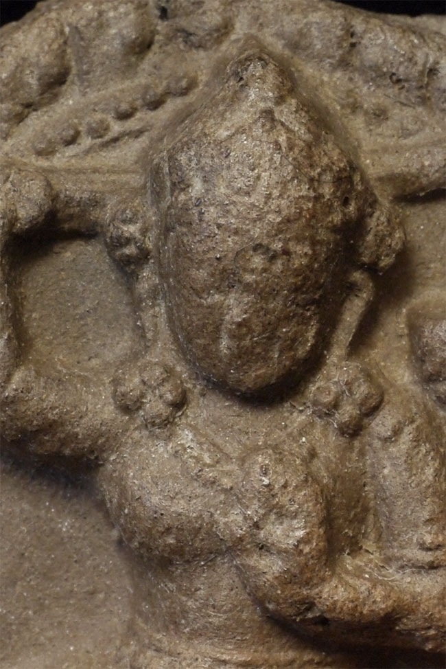 Early Tibetan Buddhist Clay Tablet of Manjushri. Sits 1.5 inches tall.