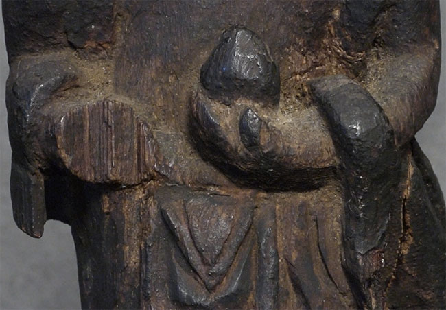 Small Japanese guardian figure. Probably Edo. Some loss, but still has a powerful presence! Stands 6.5 inches tall.