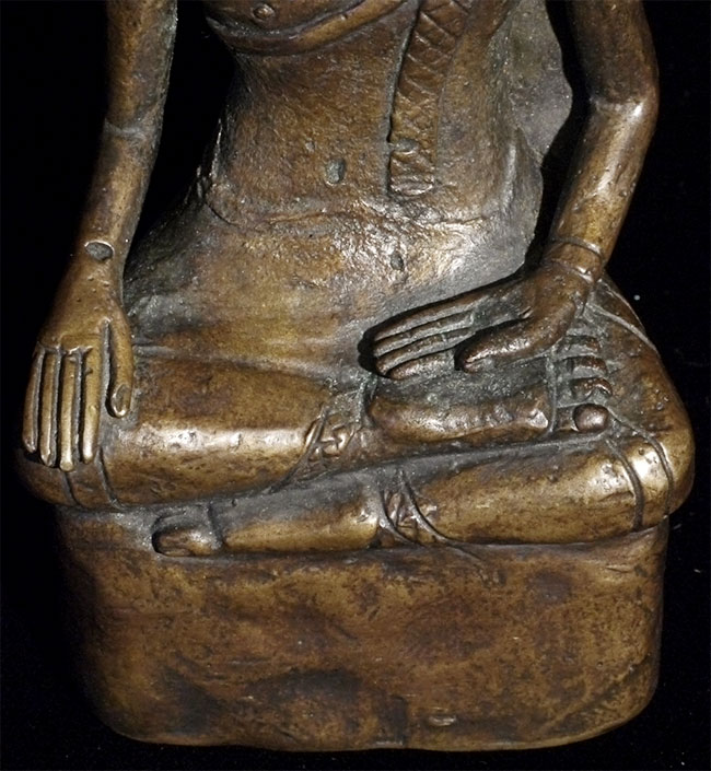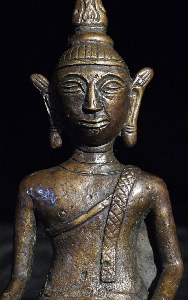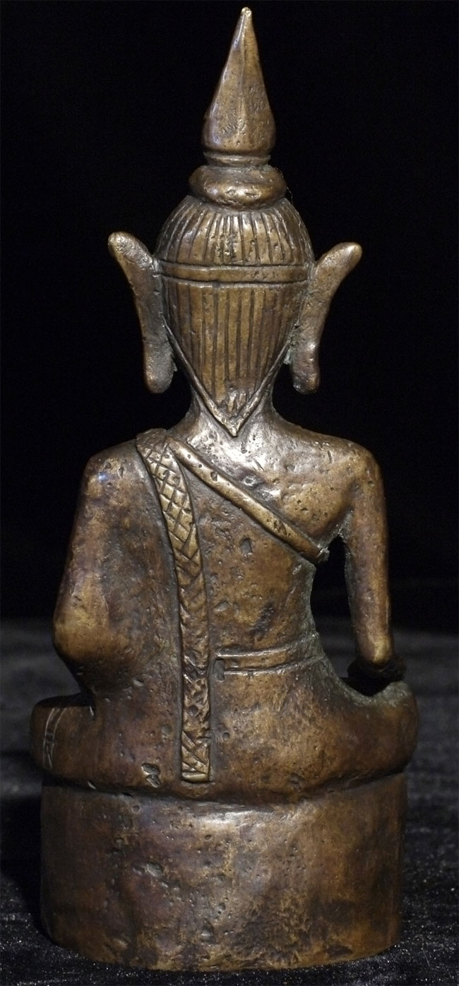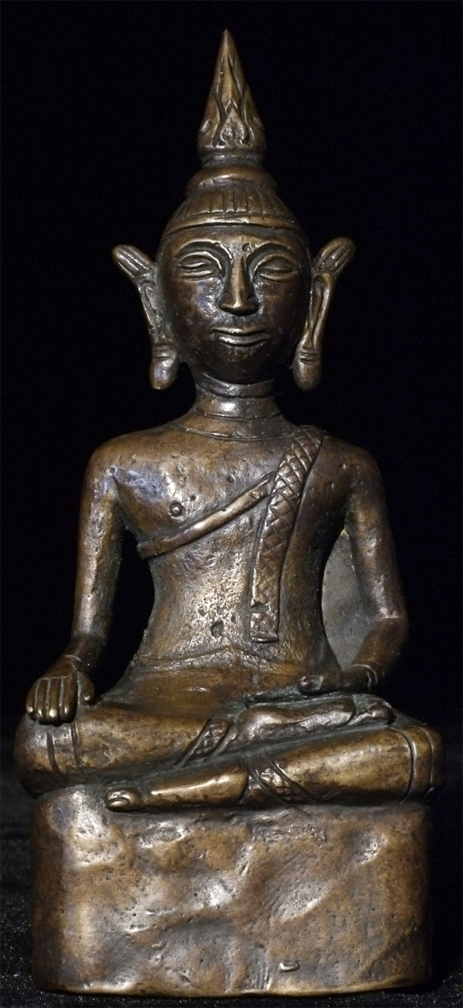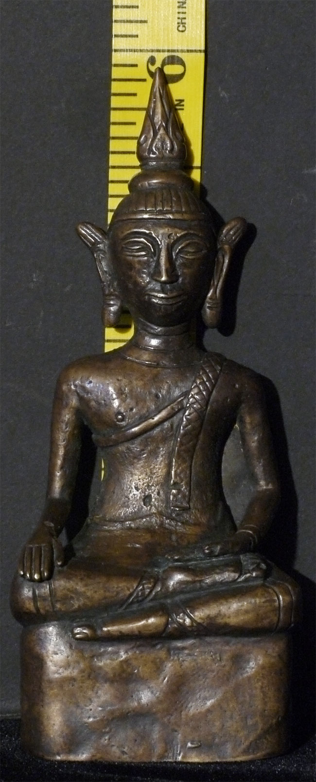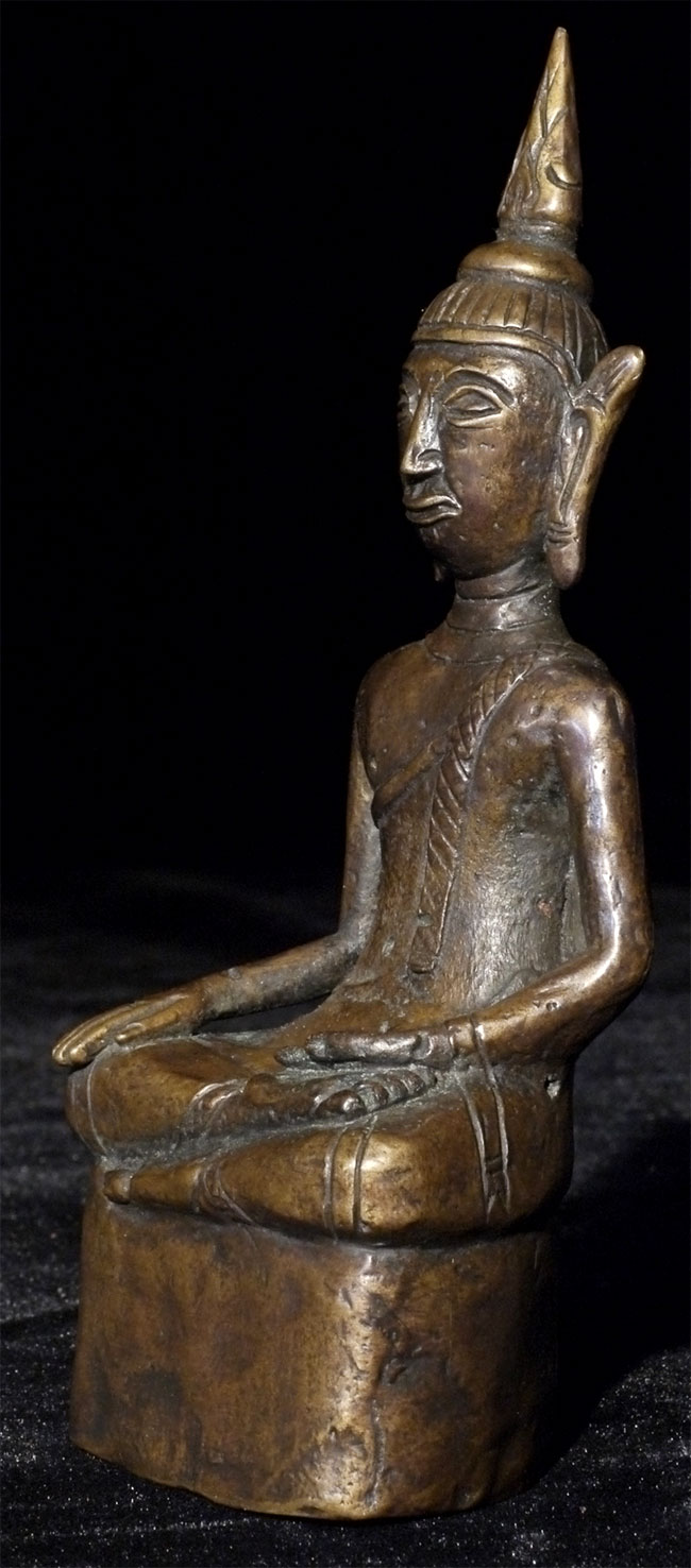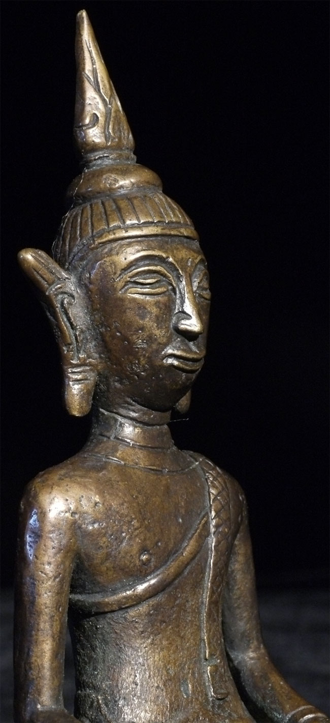Antique Northern Thailand/Laos/Southern China mixture of influence possibly from an area of ethnically Thai people, now in Southern China in Yunnan (Chen Rung). Bronze, 5 5/8 inches tall. This piece is an excellent example with a beautiful patina.