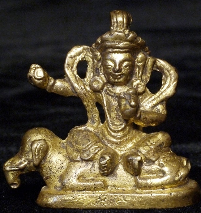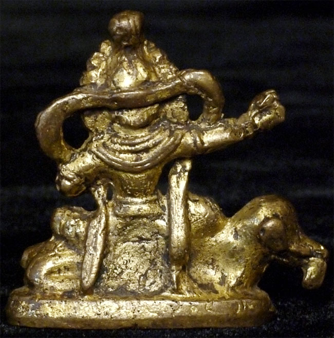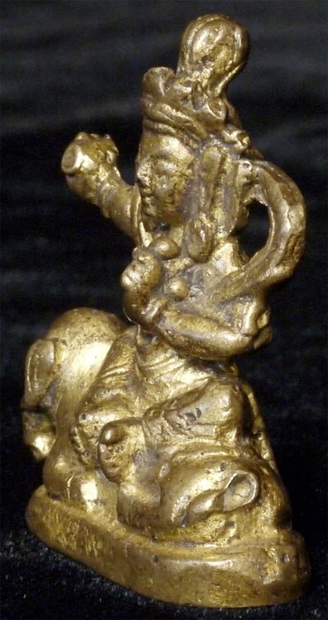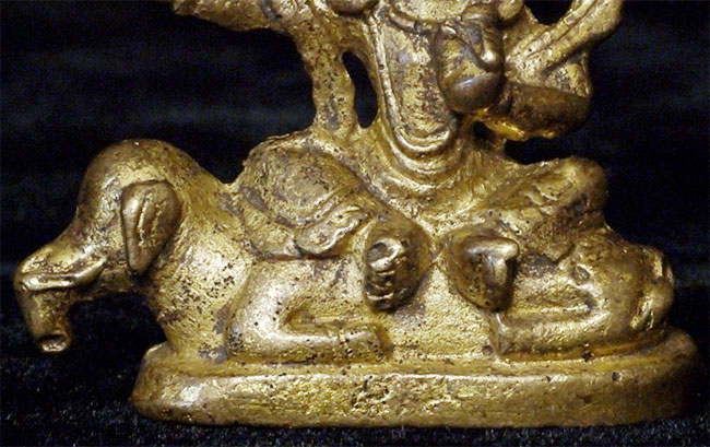 Old/Antique Mongolian figure sitting on an elephant. Bronze, 1-1/2 Inches Tall. Remains of gilding.