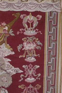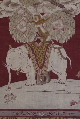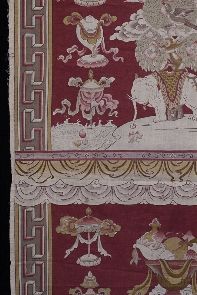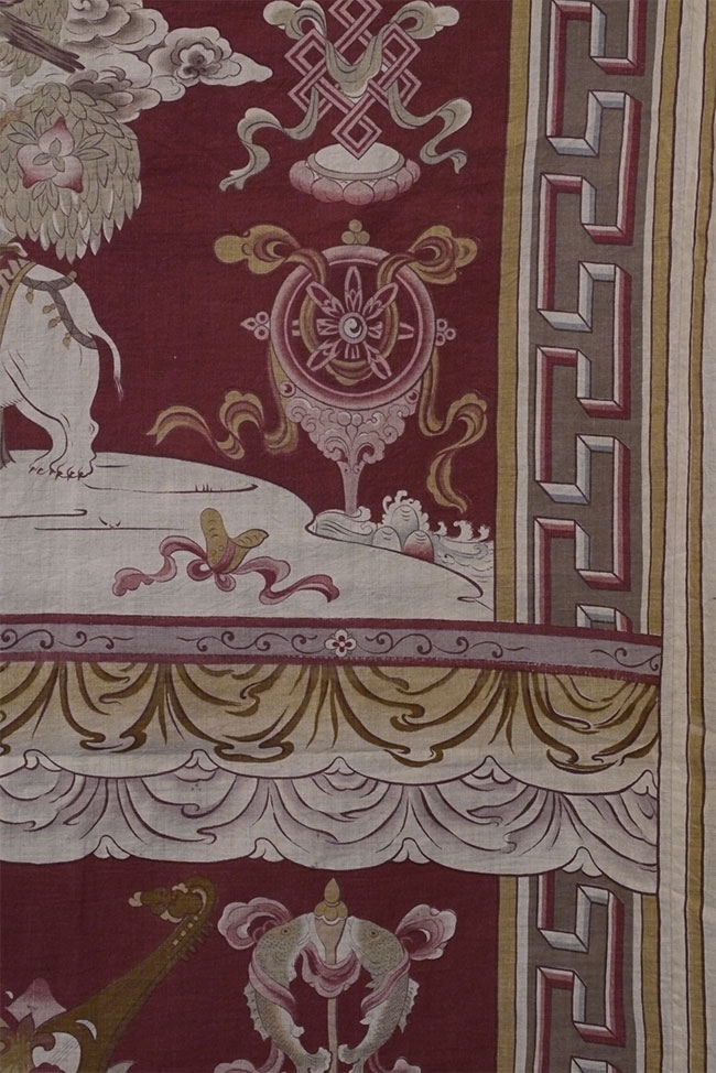 Antique Mongolian temple panels (two) of the famous story of the "four friend's: elephant, monkey, rabbit and bird, who cooperate to get the fruit from the top of the tree. A beloved story used to teach cooperation and sharing. each approximately 20x45 inches. Rare set. Excellent condition- small cut out. Not seen a set like this before.