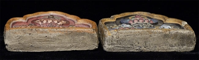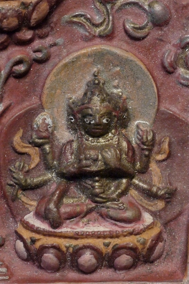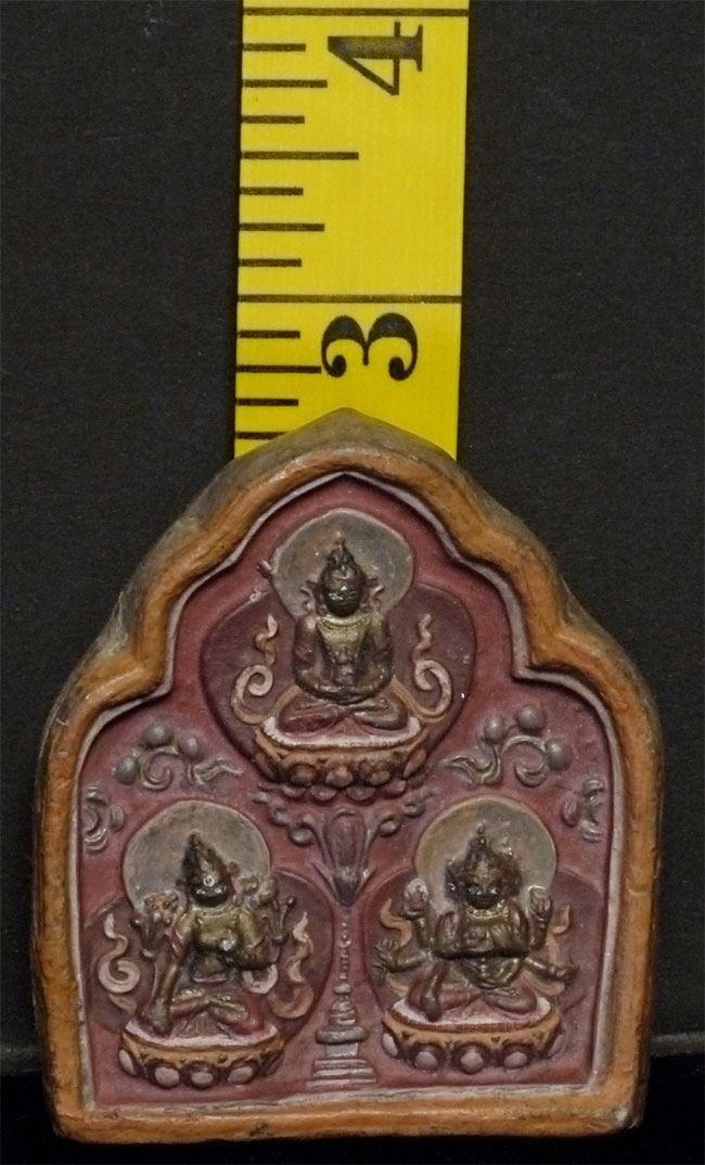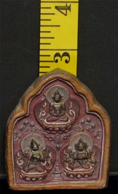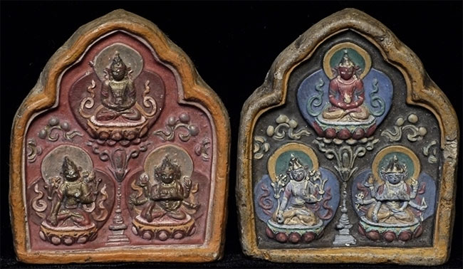 Antique Tibetan set if Clay Buddhist tablets- only matching set I've had in different colors. Each is 2-5/8 inches tall.