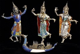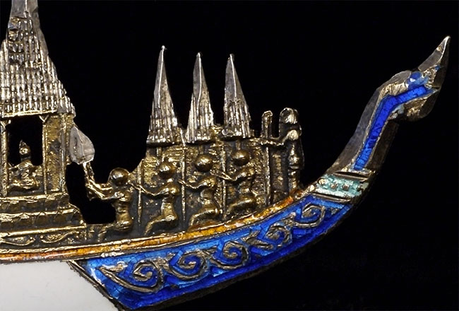 Four early 20thC "Siam Silver" cloisonne pins, each approximately 2.5 inches long. These are of exceptional quality.