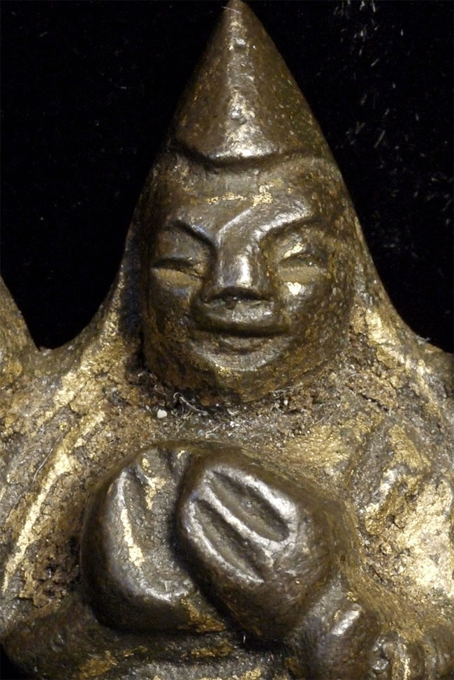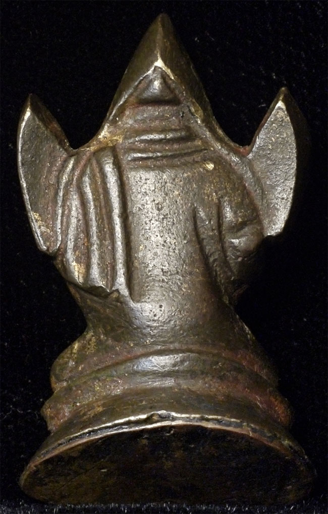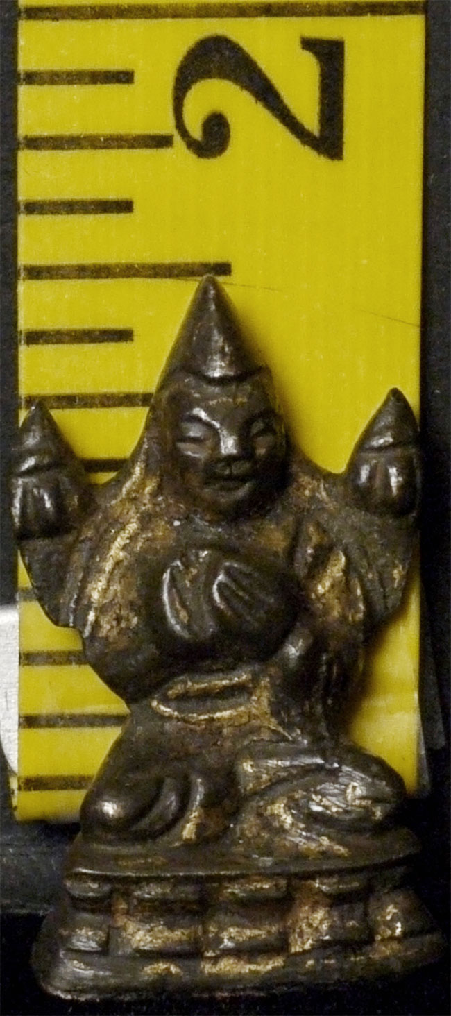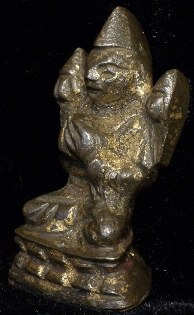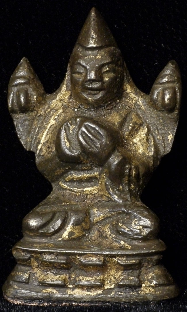 Old Seated Mongolian Bronze Tsong Ka Pa. 1.25" tall. Base is .75" across, 3/8" deep. Has a backward lean. Wonderful feeling to the face.
