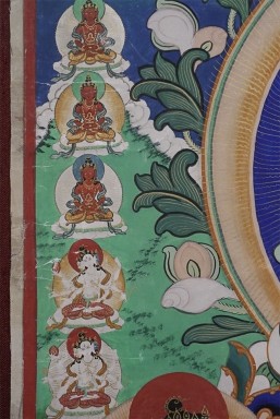 Antique Mongolian Thangka. Large for it's type at 14 by 19 inches (Thangka alone),custom frame (with Thai silk mat and museum glass) is 20.5 by 25.5 inches. Purchased shortly after Mongolia opened to the west. Beautiful! You will not find one of this type that is nicer.