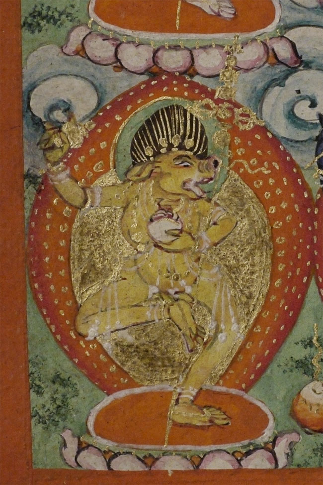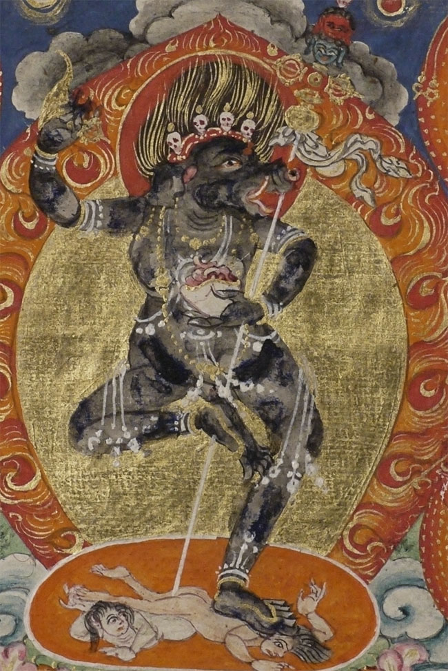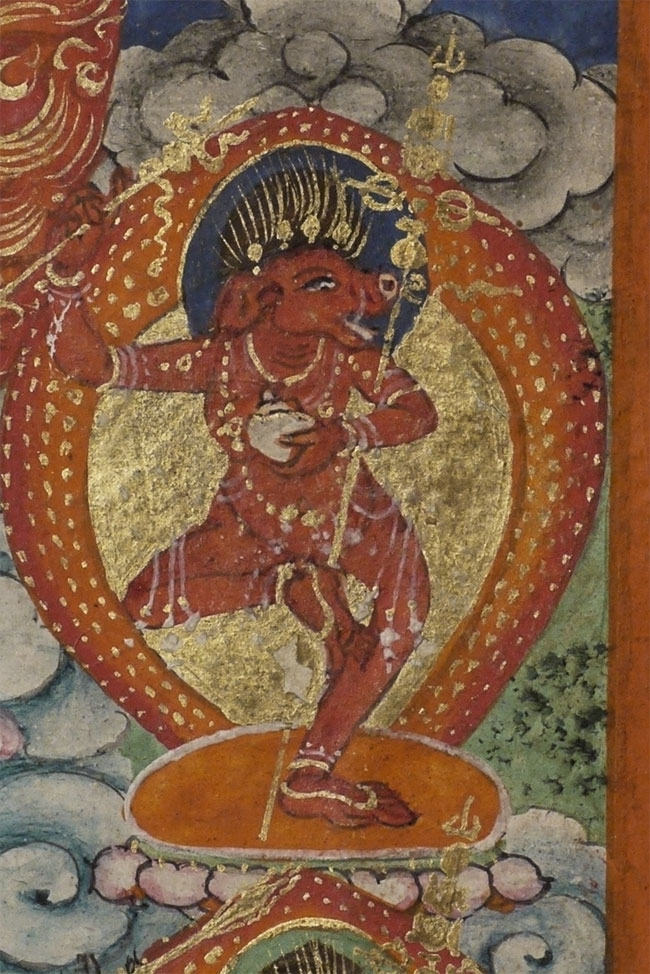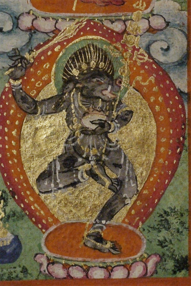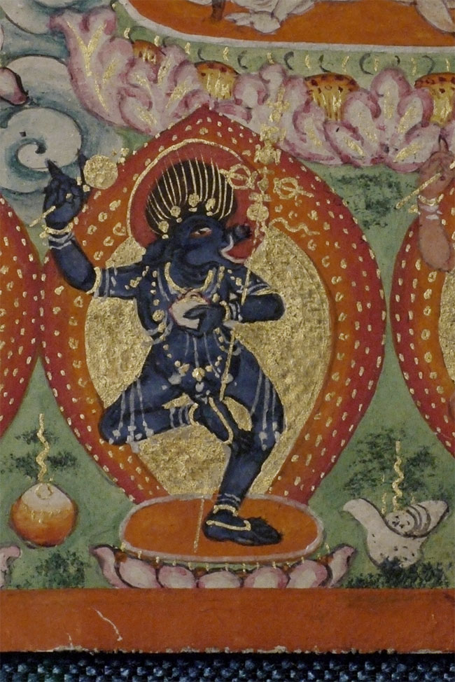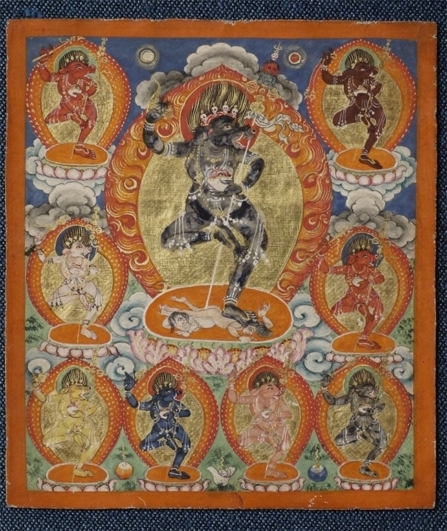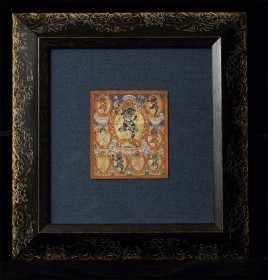 Very fine old Mongolian Thangka in custom frame, with museum glass. Thangka measures 3.75 x 3.25 inches, frame measures 10 x 10.5