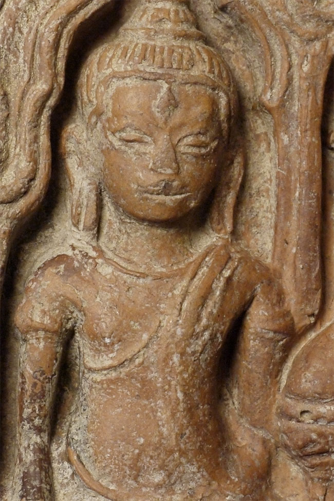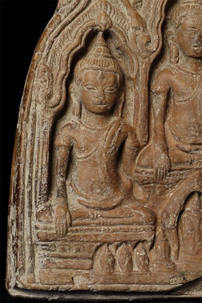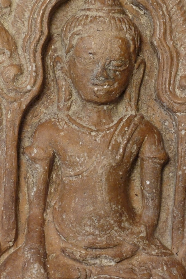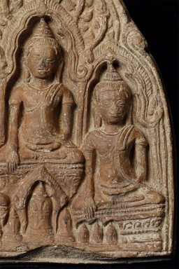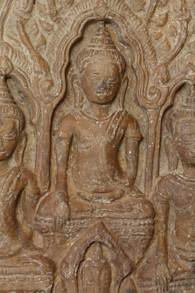 Cambodian Buddha Tablet. Probably a period (12/13thC) piece, though these have been emulated for centuries. Some wear and loss. Good size at 5 inches tall, 4 inches wide. A good example of its type.