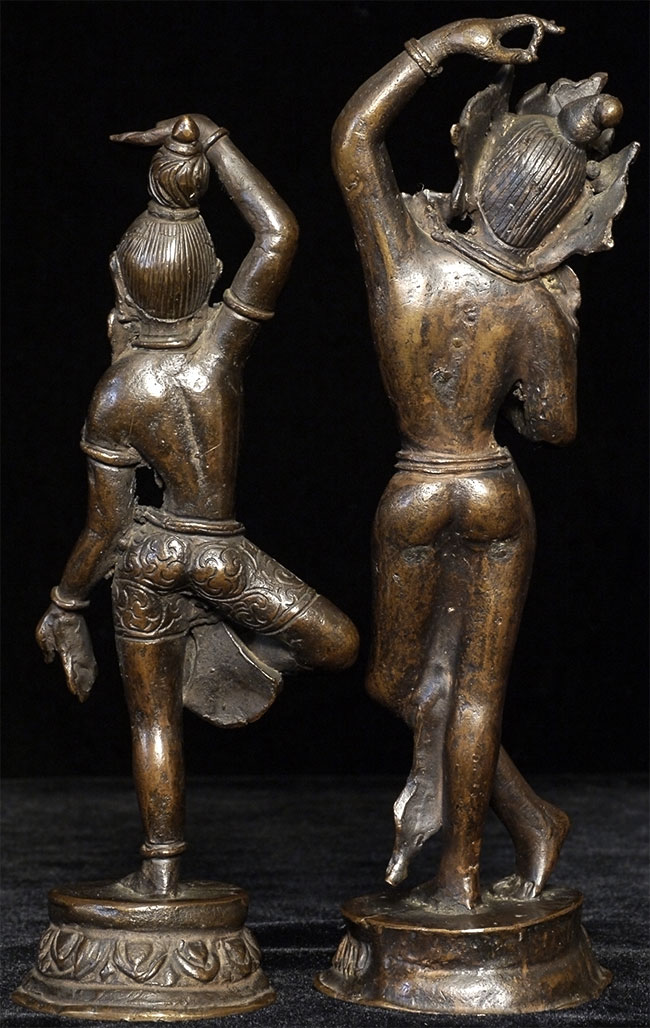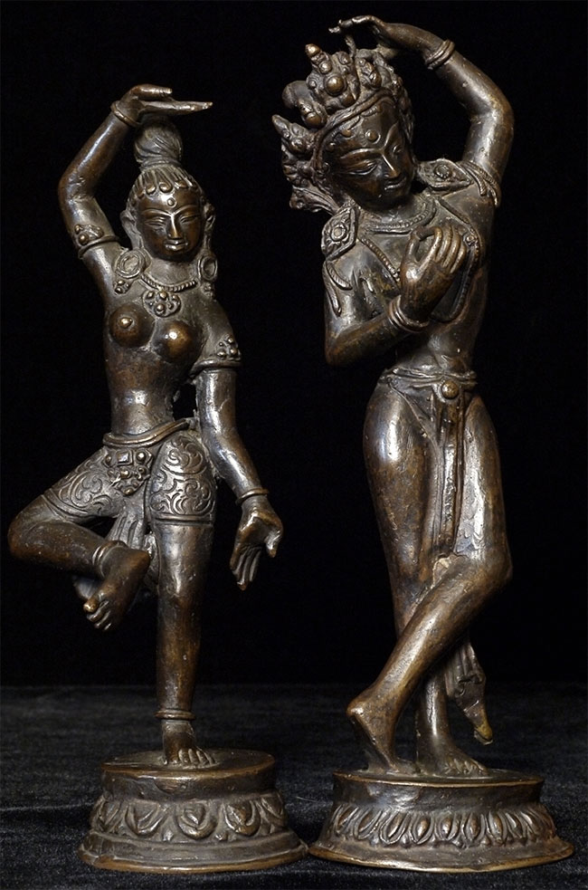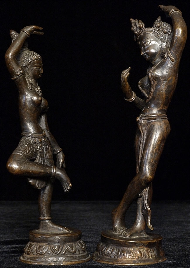 Vintage Nepalese figures (pair). Stand 7" and 7.5" tall.
