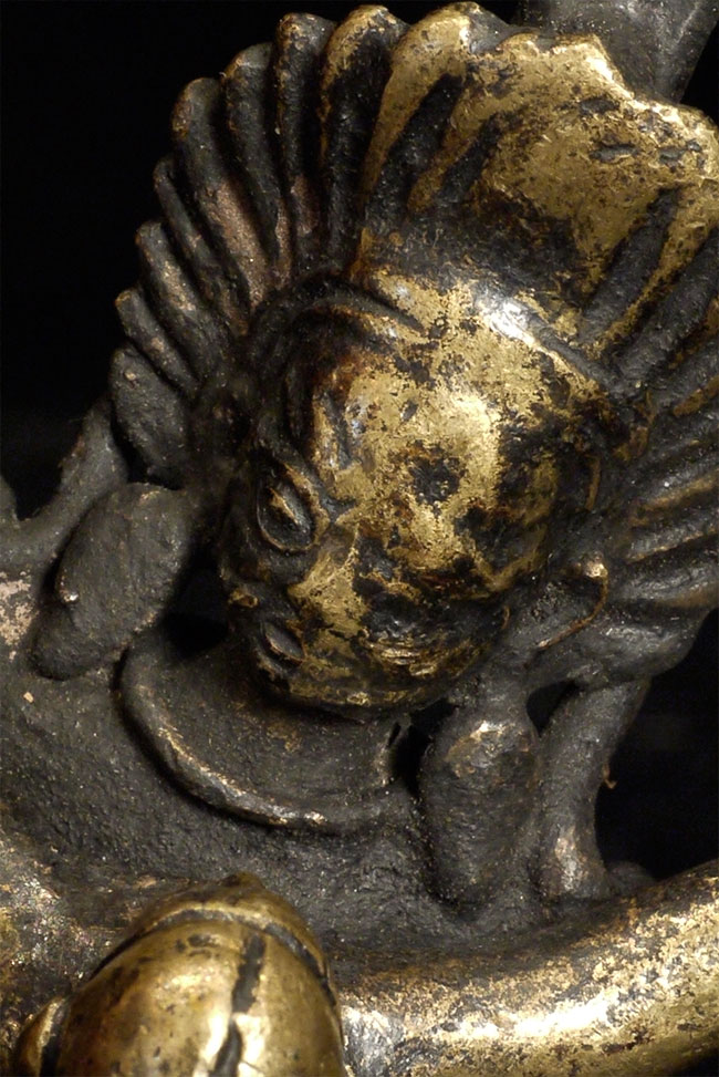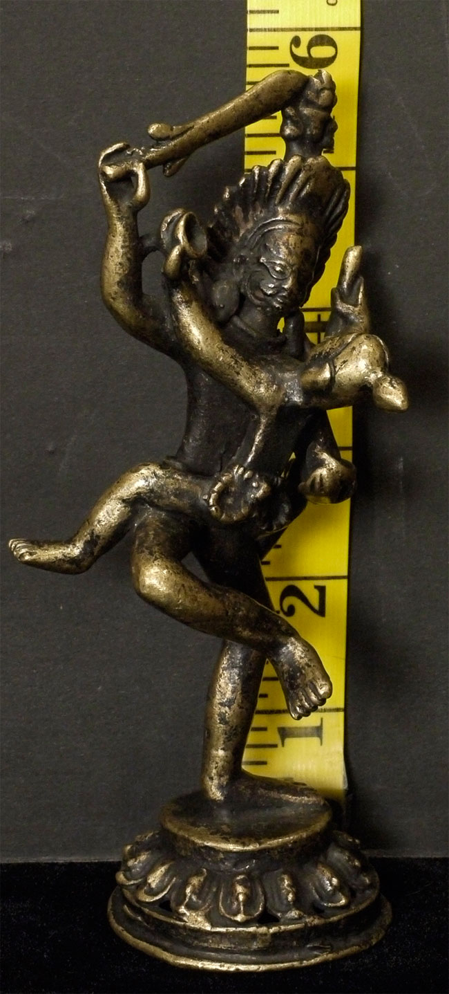 Nice old Nepalese tantric piece. Stands 5.75 inches tall. Significant ritual wear.